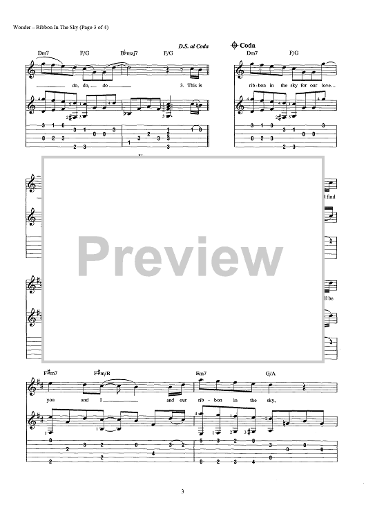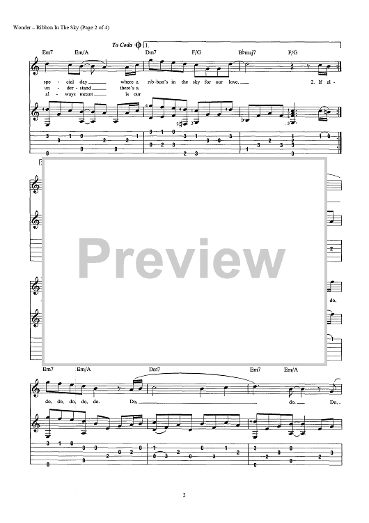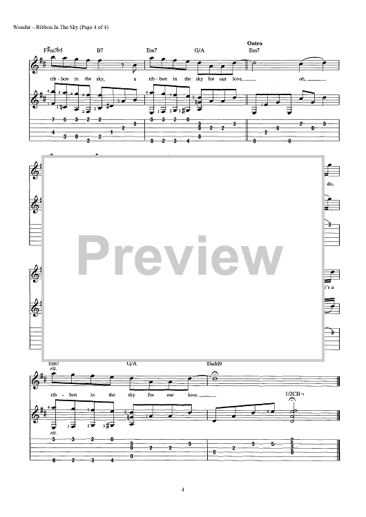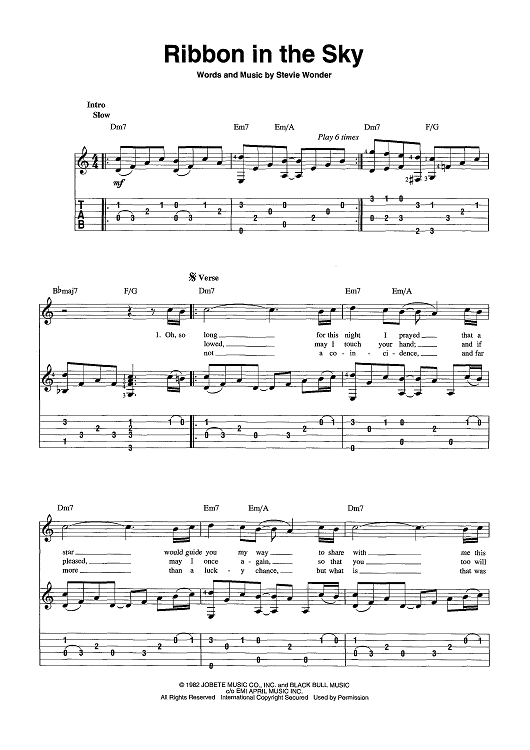 Digital Sheet Music for Ribbon in the Sky by Stevie Wonder scored for Guitar Tab/Vocal/Chords; id:443612