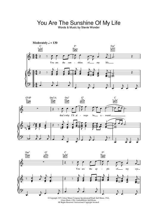 "You Are The Sunshine Of My Life" Sheet Music by Stevie Wonder