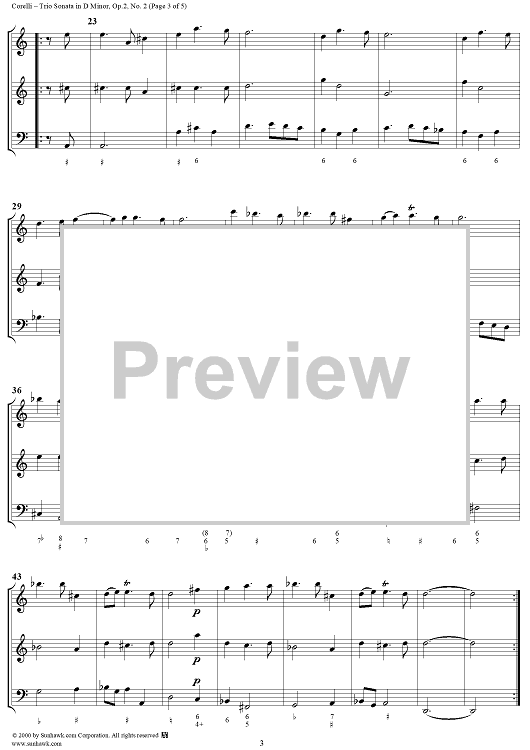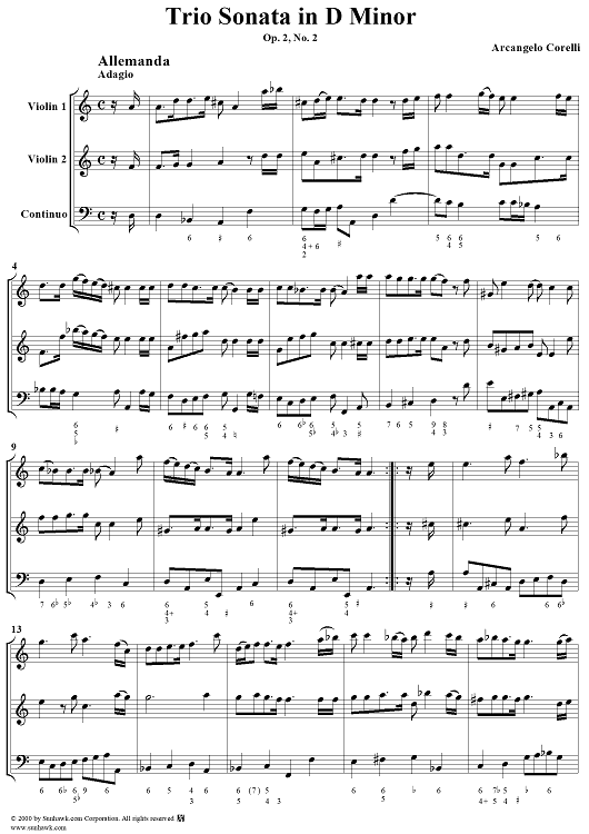 Digital Sheet Music for Trio Sonata in D minor, op. 2, no. 2 by Arcangelo Corelli scored for String Trio; id:186188