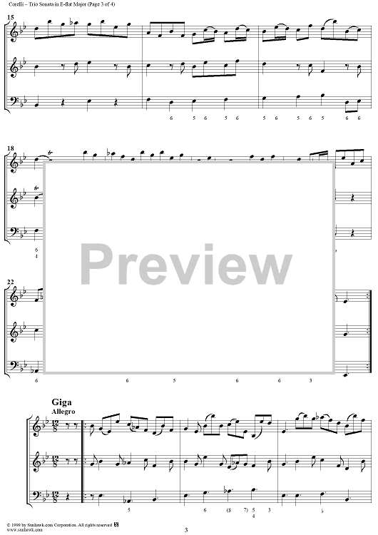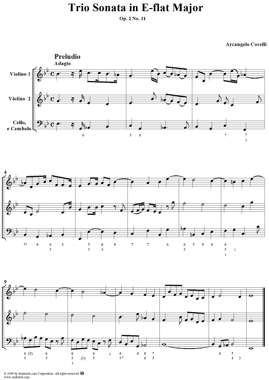 Digital Sheet Music for Trio Sonata in E-flat major, op. 2, no. 11 by Arcangelo Corelli scored for String Trio; id:186202