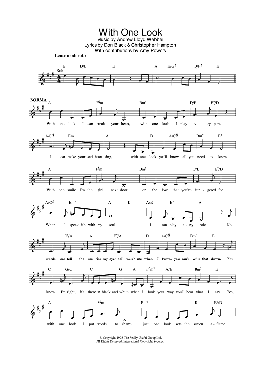 Digital Sheet Music for With One Look by Andrew Lloyd Webber scored for Lead Sheet; id:375983