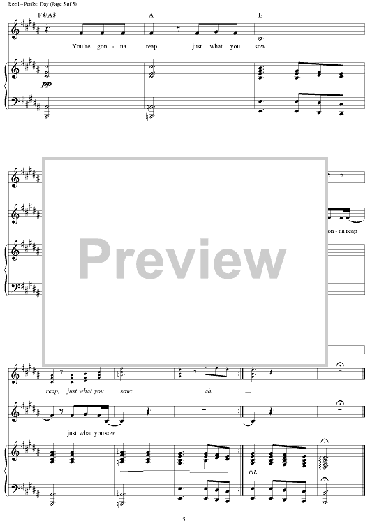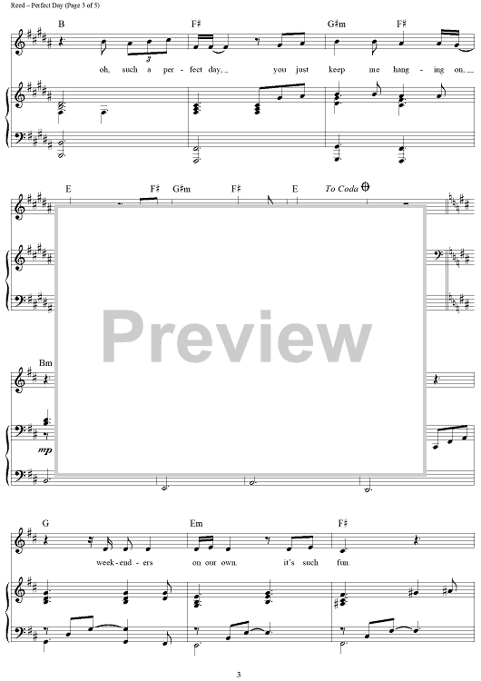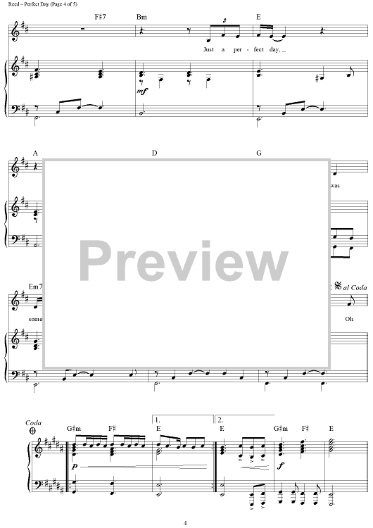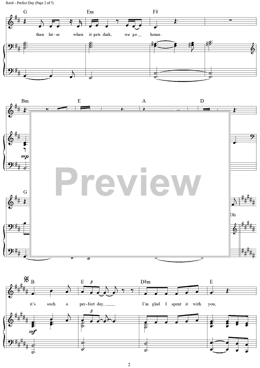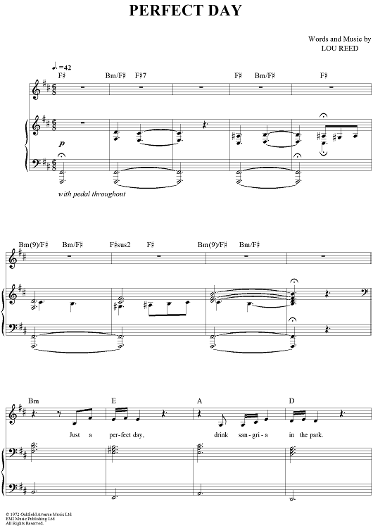 Digital Sheet Music for Perfect Day by Lou Reed, Susan Boyle scored for Piano/Vocal/Chords; id:417970