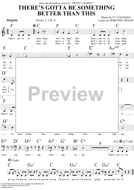 Digital Sheet Music for There's Gotta Be Something Better Than This by Cy Coleman, Dorothy Fields scored for Lead Sheet; id:272152