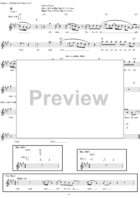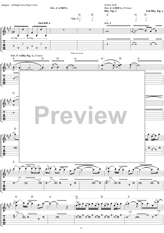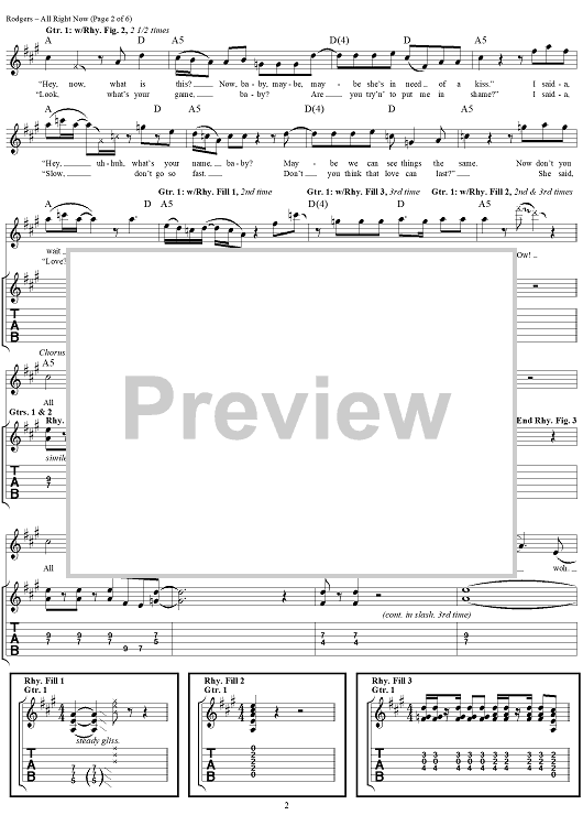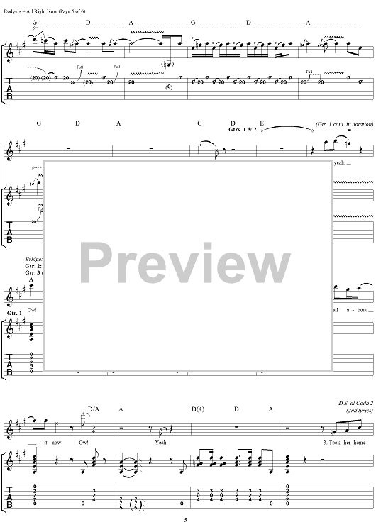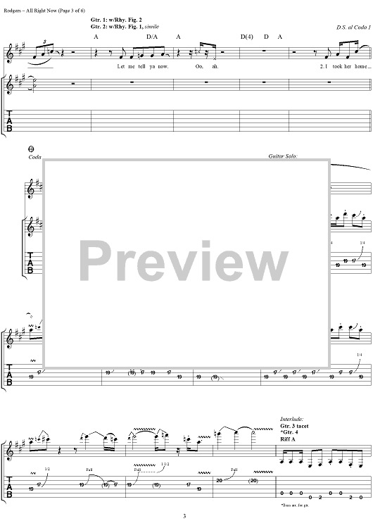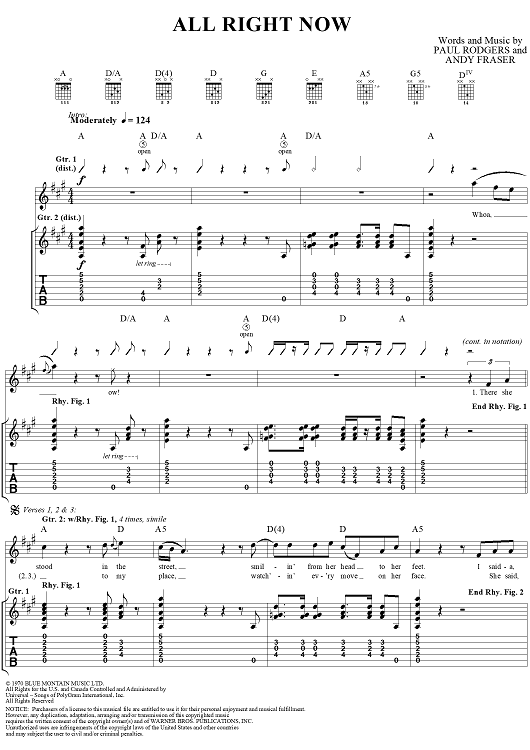 Digital Sheet Music for All Right Now by Free, Paul Rodgers, Andy Fraser scored for Guitar Tab/Vocal; id:225168