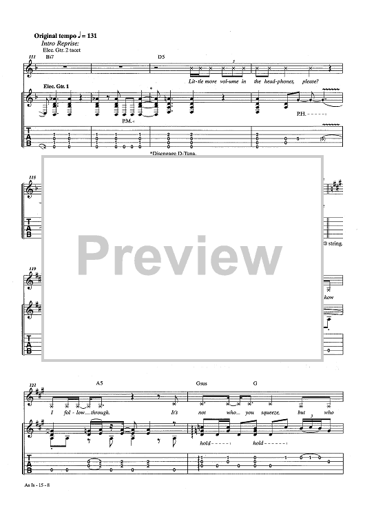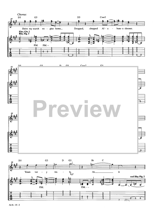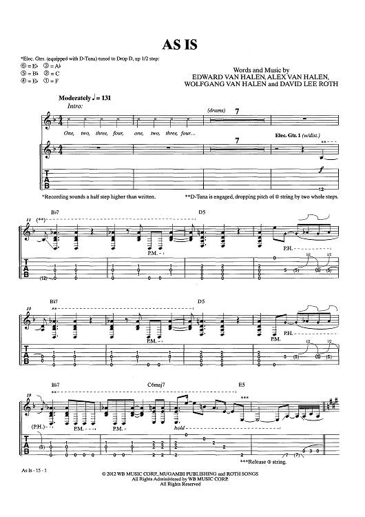 Digital Sheet Music for As Is by Eddie Van Halen, David Lee Roth, Alex Van Halen, Van Halen, Wolfgang Van Halen scored for Guitar Tab/Vocal; id:430287