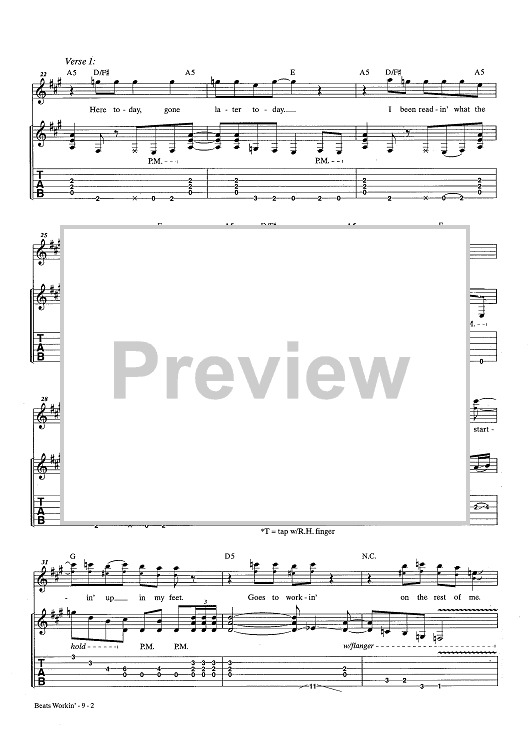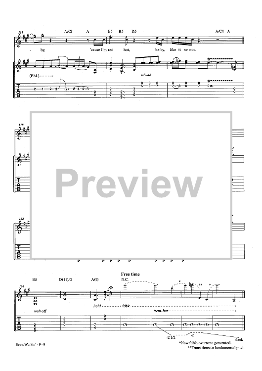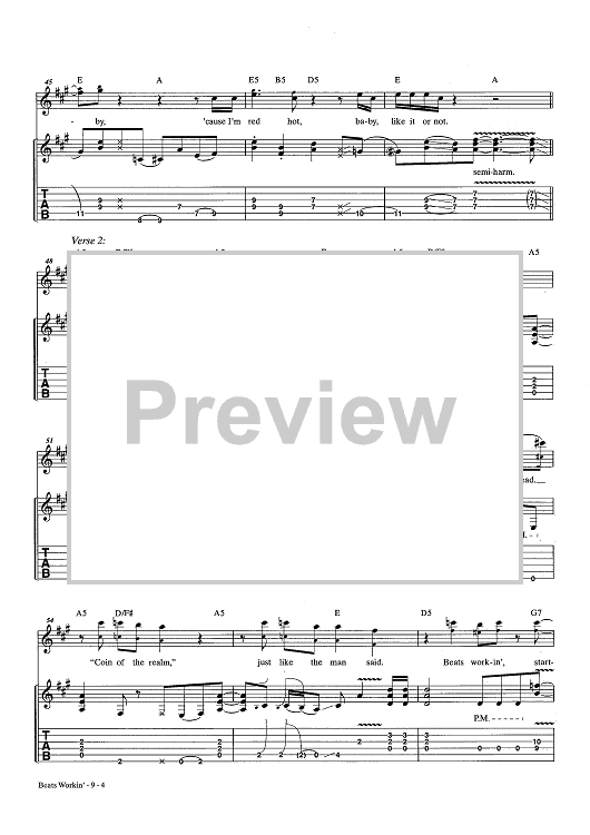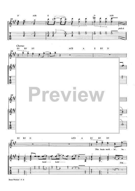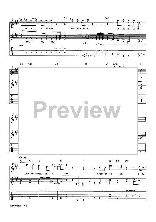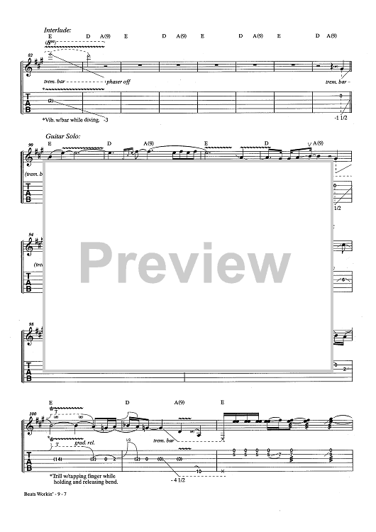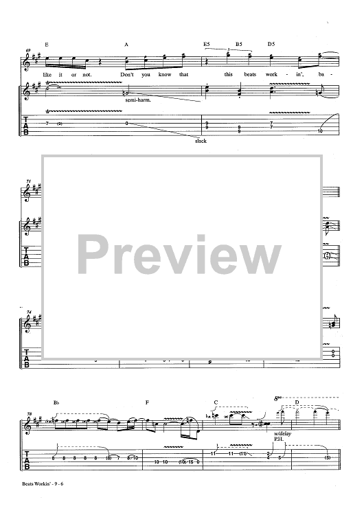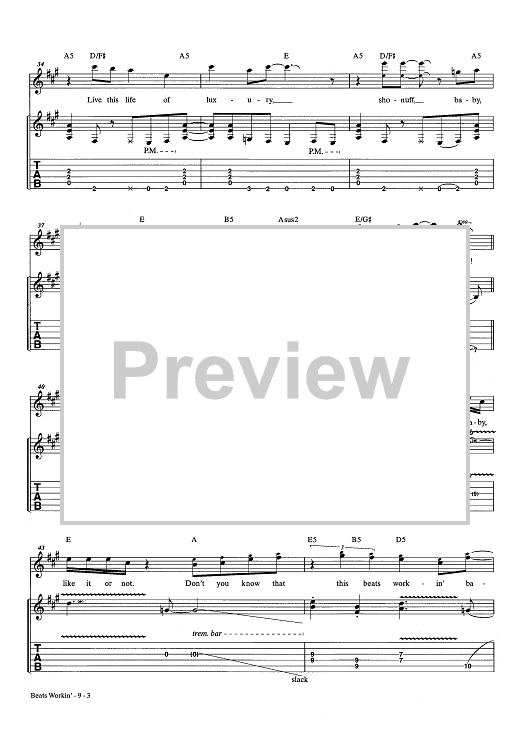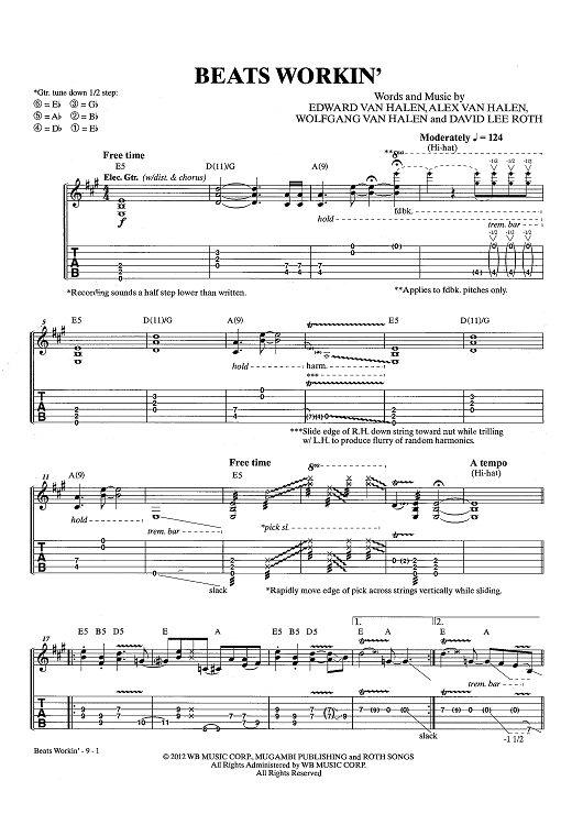 Digital Sheet Music for Beats Workin' by Eddie Van Halen, David Lee Roth, Alex Van Halen, Van Halen, Wolfgang Van Halen scored for Guitar Tab/Vocal; id:430288