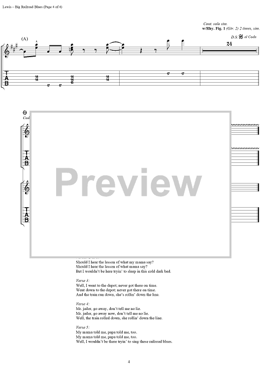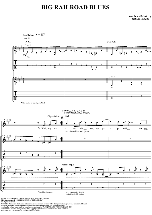 "Big Railroad Blues" Sheet Music by Grateful Dead