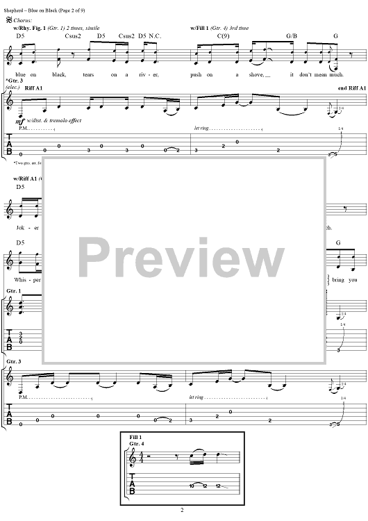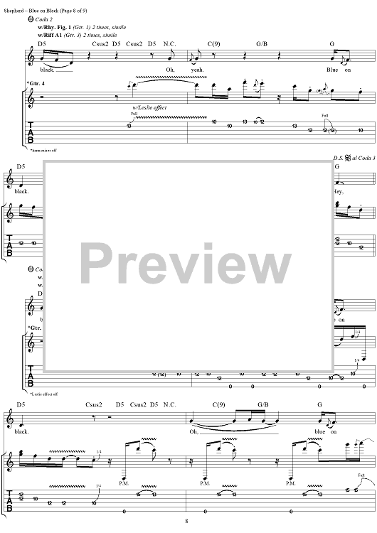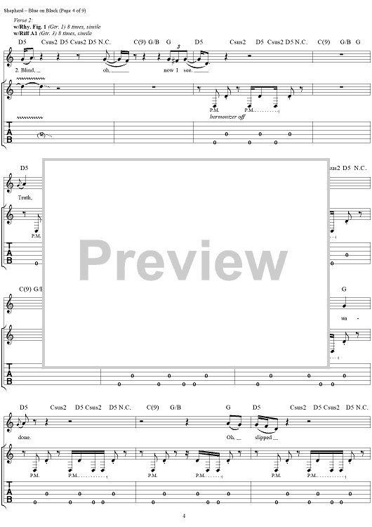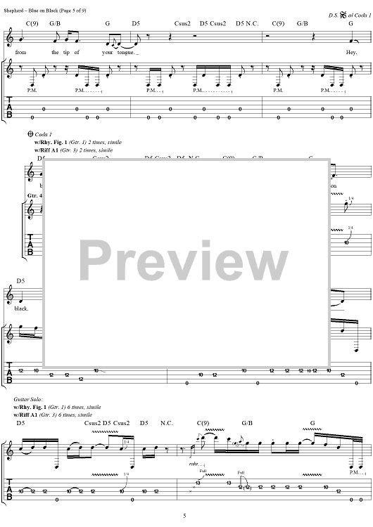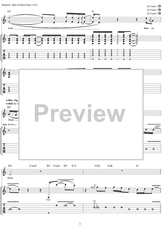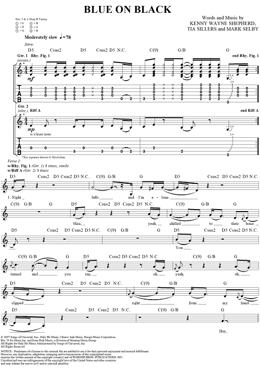 "Blue on Black" Sheet Music by Kenny Wayne Shepherd Band