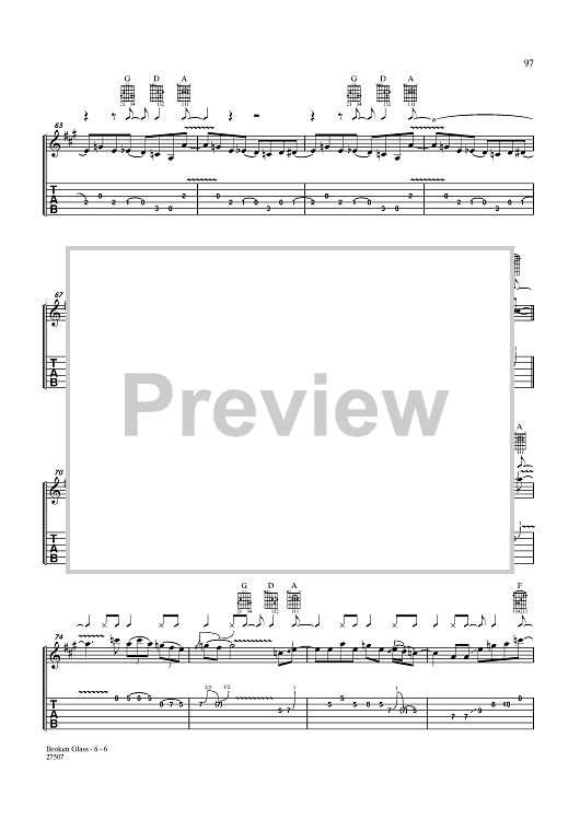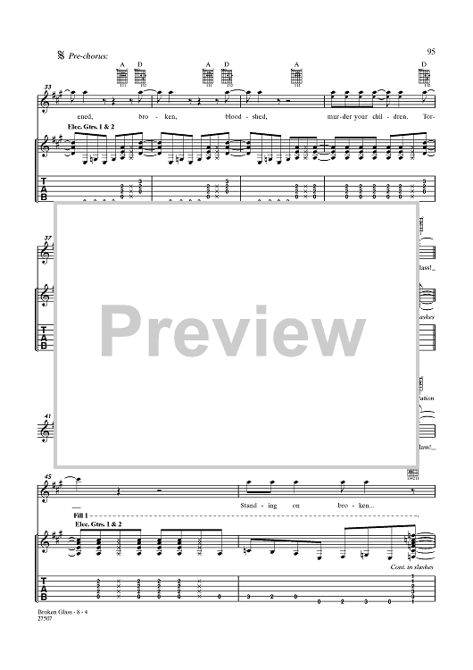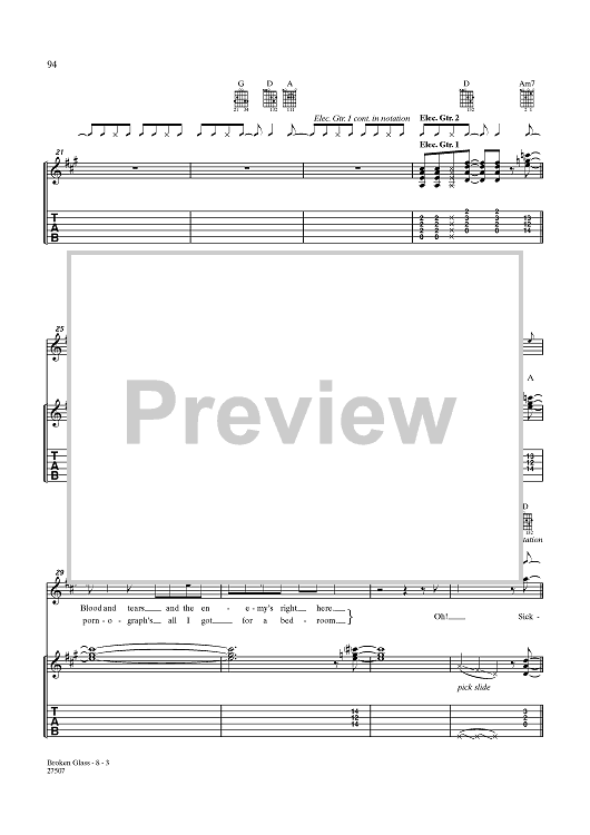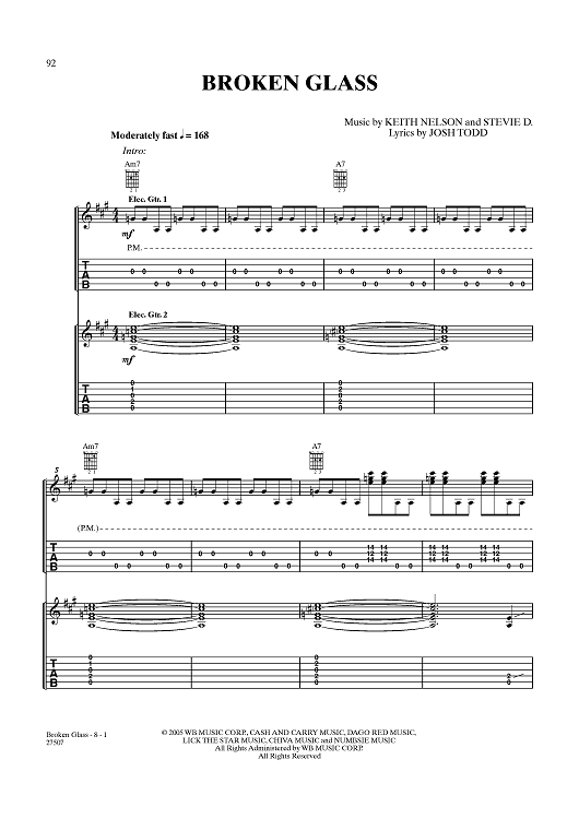 Digital Sheet Music for Broken Glass by Keith Nelson, Josh Todd, Buckcherry, Stevie D. scored for Guitar Tab/Vocal; id:360521