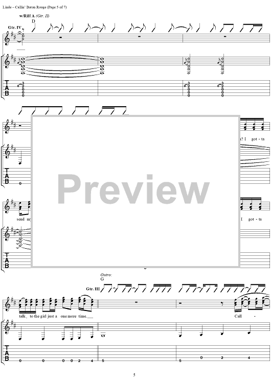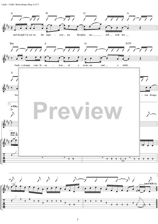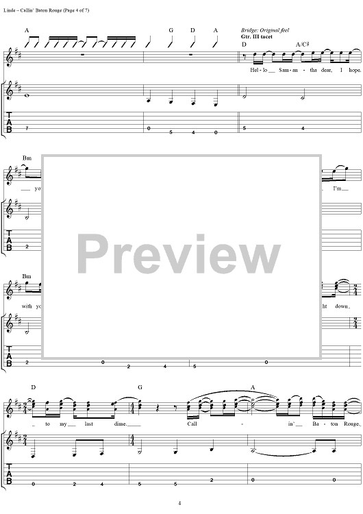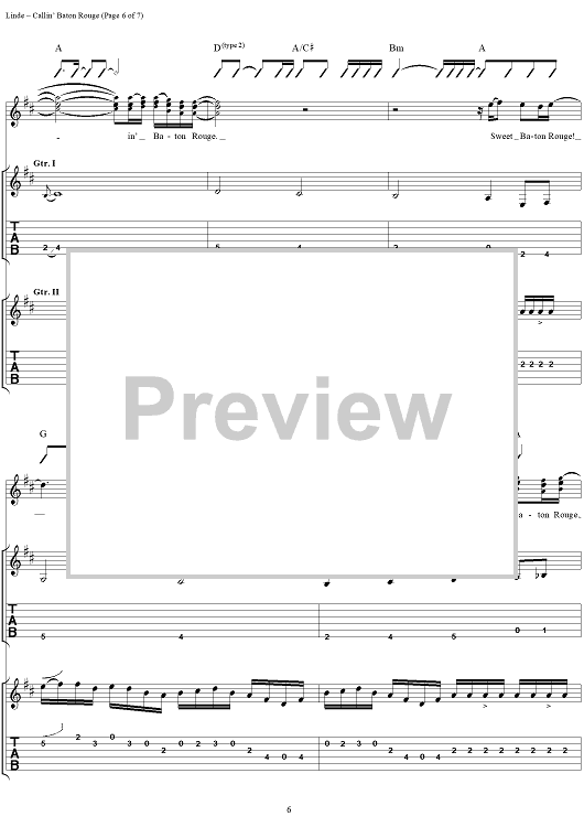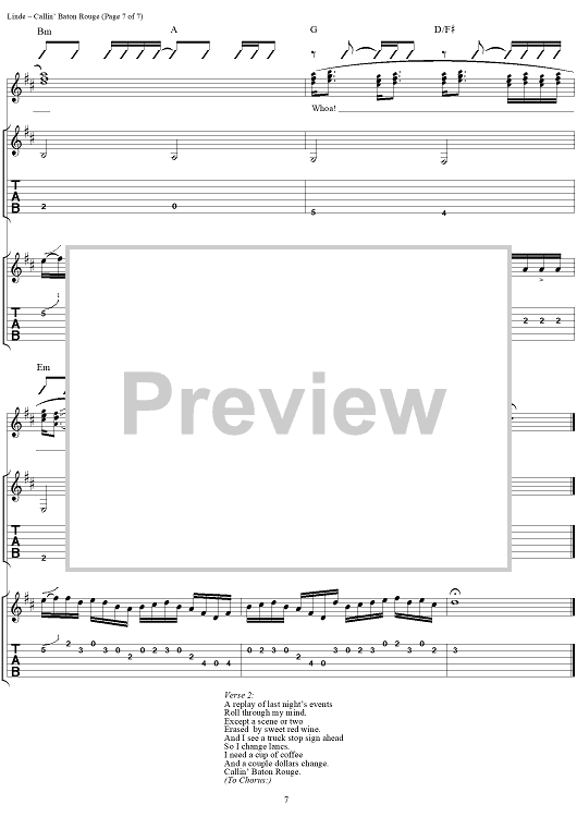 Digital Sheet Music for Callin' Baton Rouge by Garth Brooks, Dennis Linde scored for Guitar Tab/Vocal; id:241948