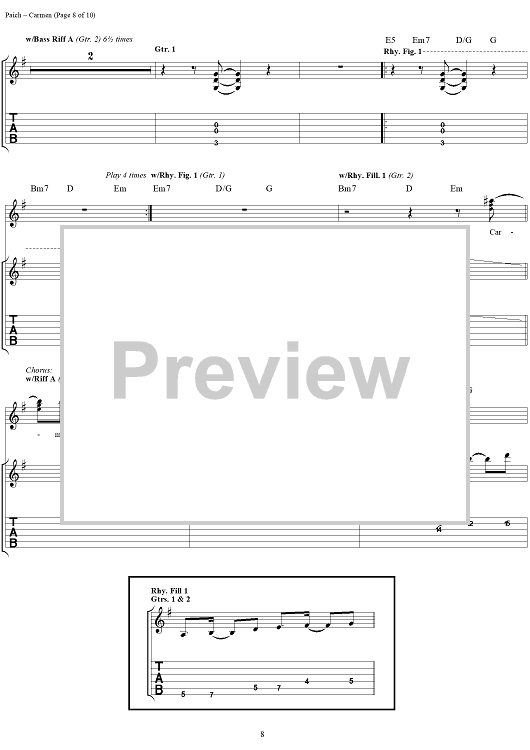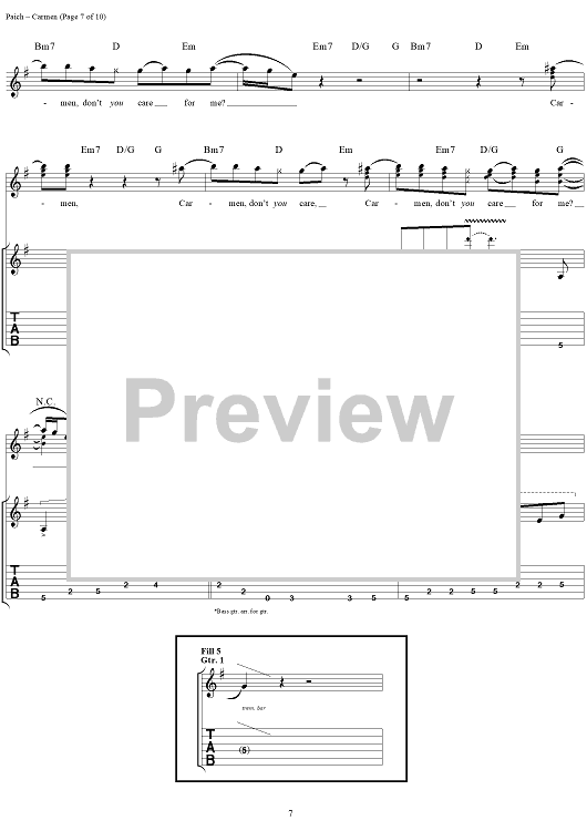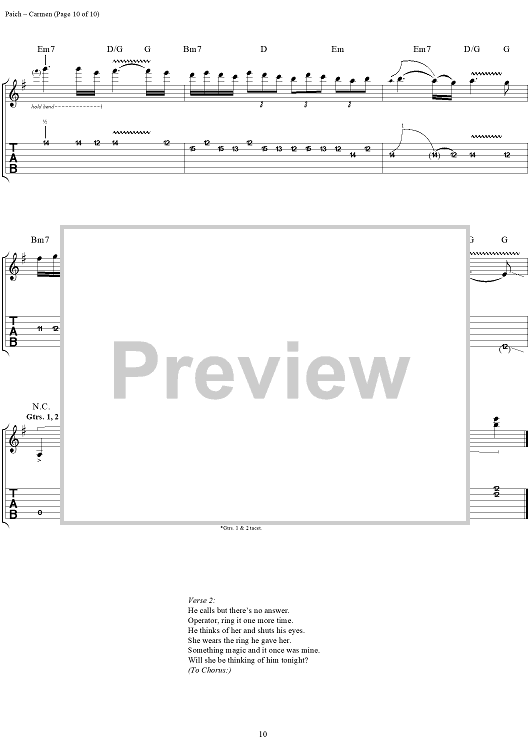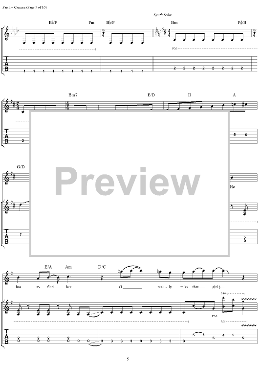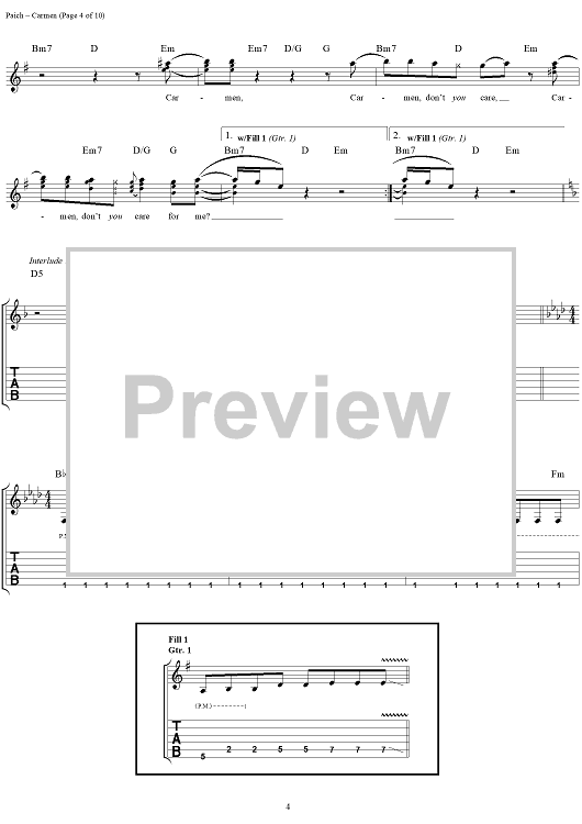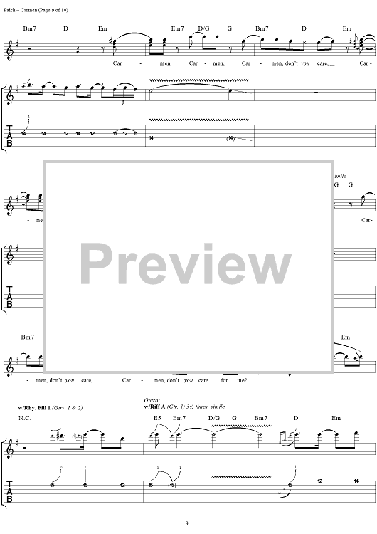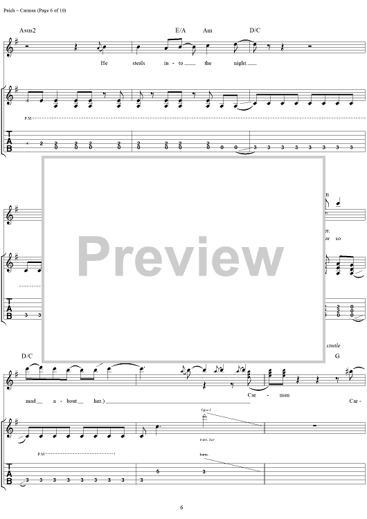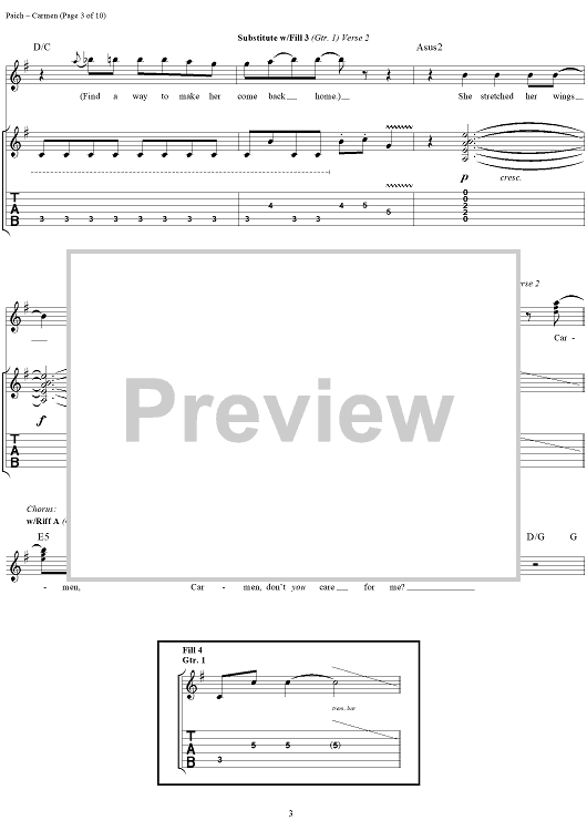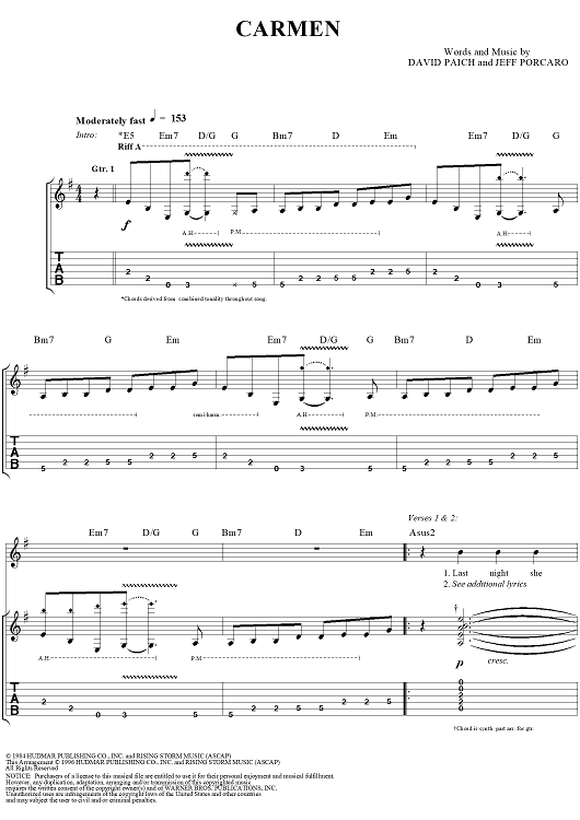Digital Sheet Music for Carmen by Toto, David Paich, Jeff Porcaro scored for Guitar Tab/Vocal; id:120108