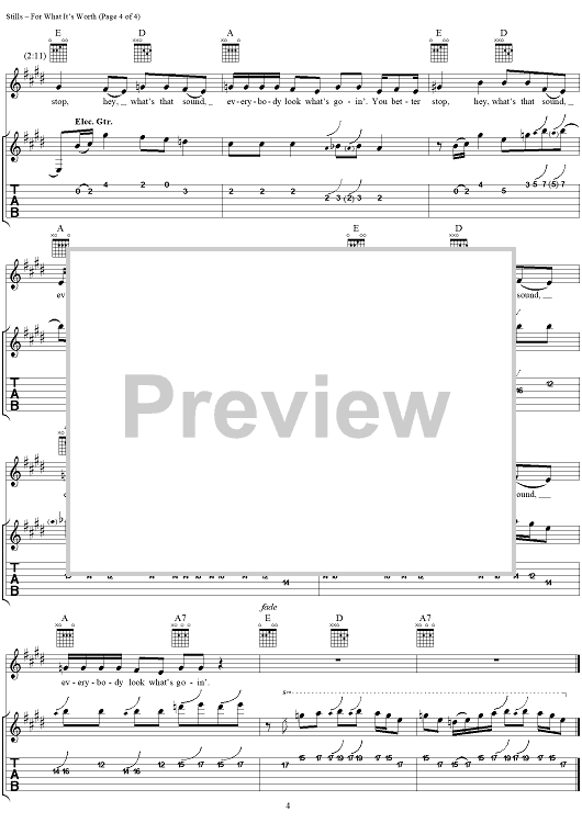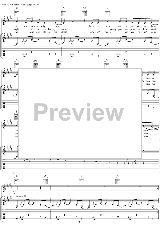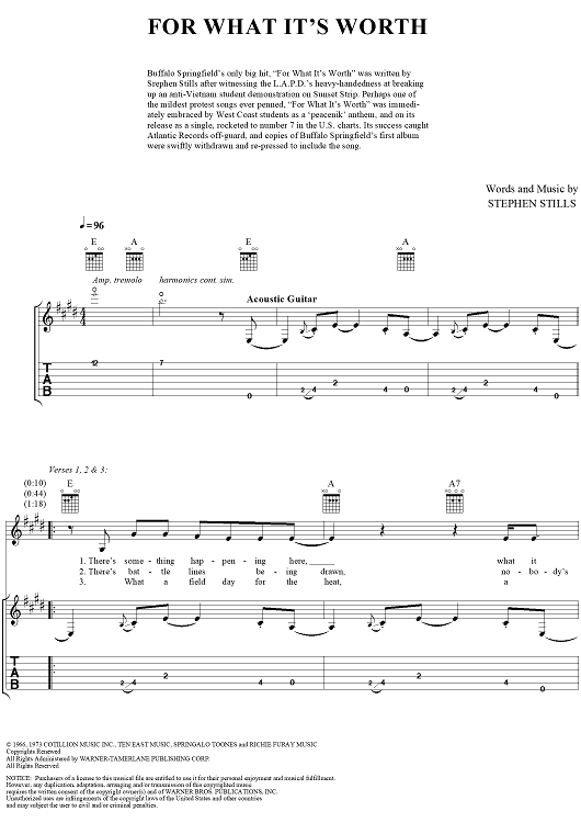 "For What It's Worth" Sheet Music by Buffalo Springfield
