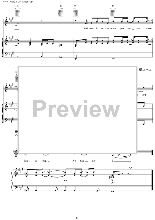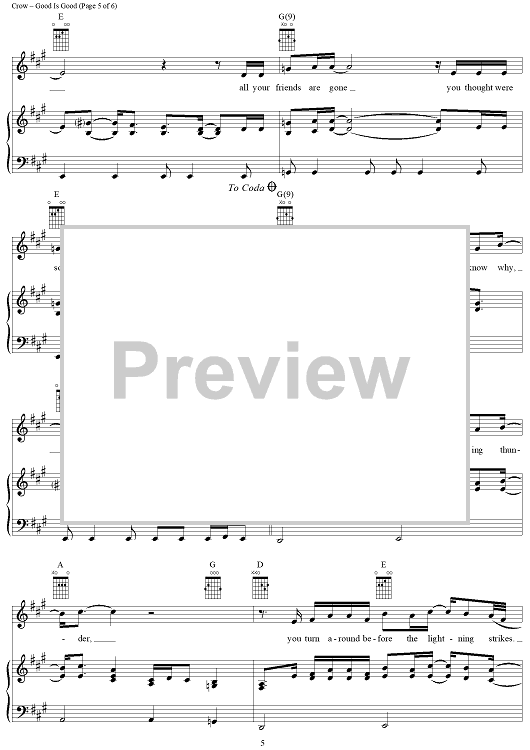 Digital Sheet Music for Good Is Good by Sheryl Crow, Jeff Trott scored for Piano/Vocal/Chords; id:321306