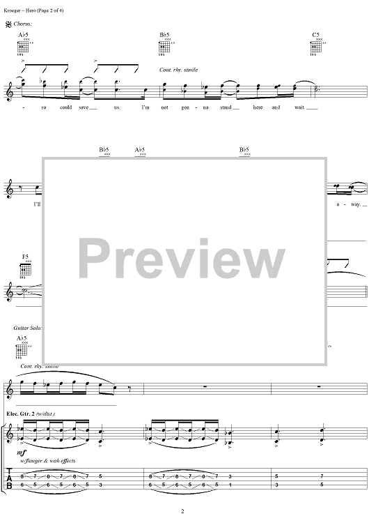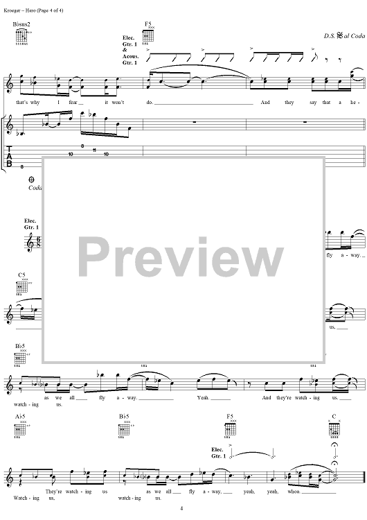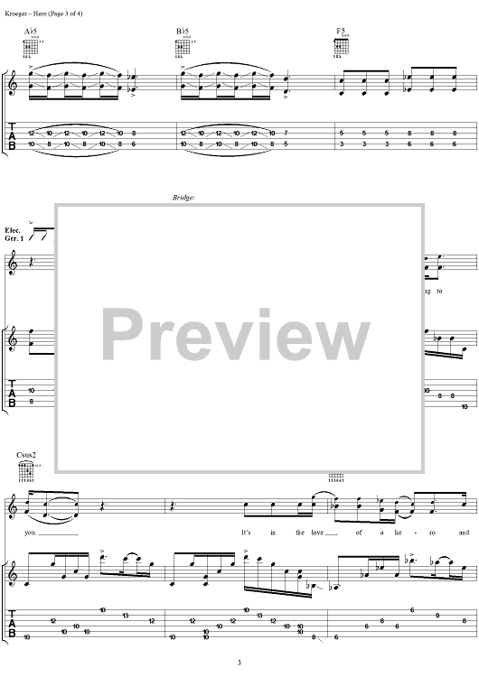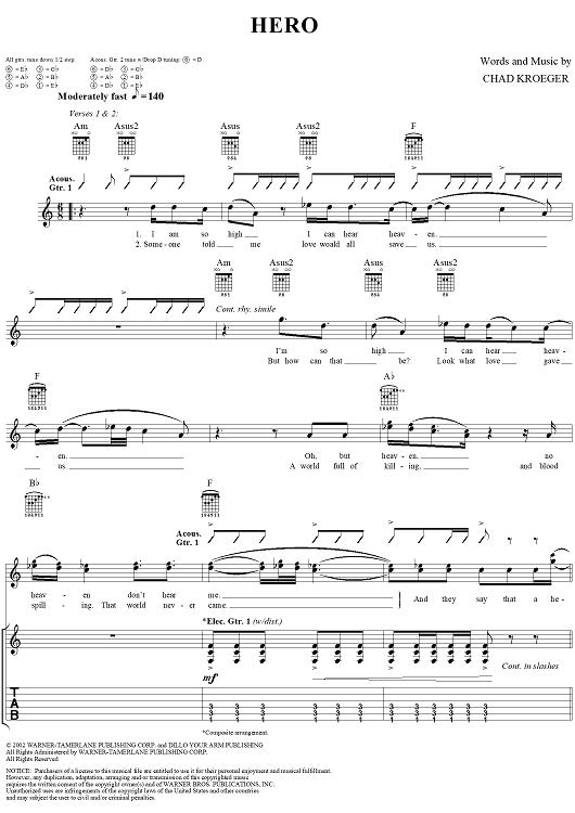 Digital Sheet Music for Hero by Chad Kroeger scored for Guitar Tab/Vocal; id:295384