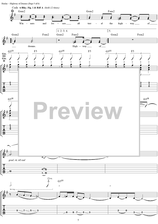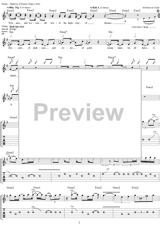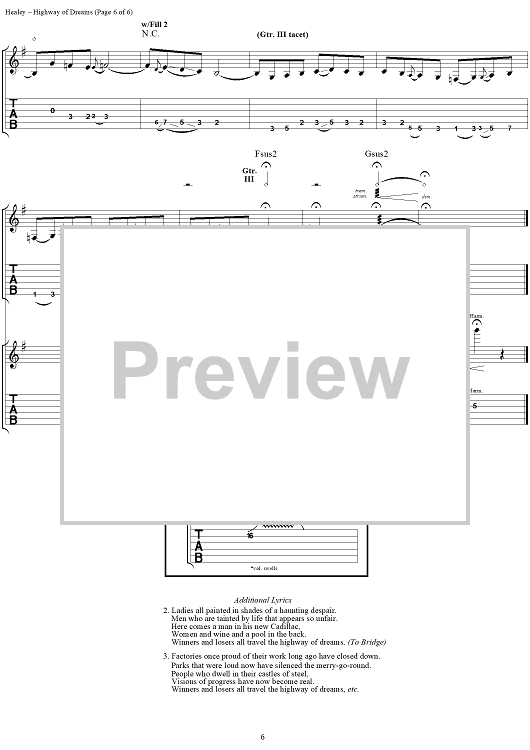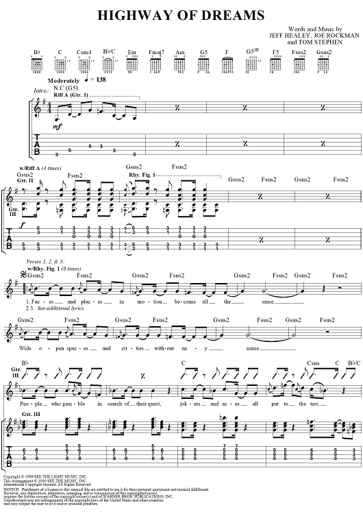 Digital Sheet Music for Highway of Dreams by Tom Stephen, Jeff Healey, Joe Rockman scored for Guitar Tab/Vocal; id:114083