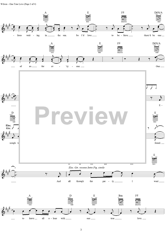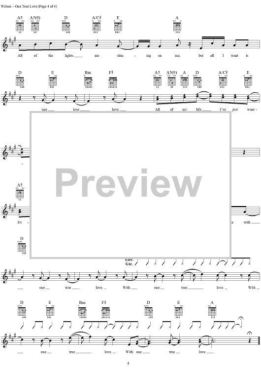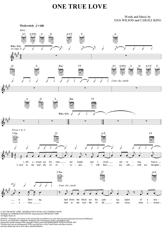 Digital Sheet Music for One True Love by Carole King, Semisonic, Dan Wilson scored for Guitar Tab/Vocal; id:285289