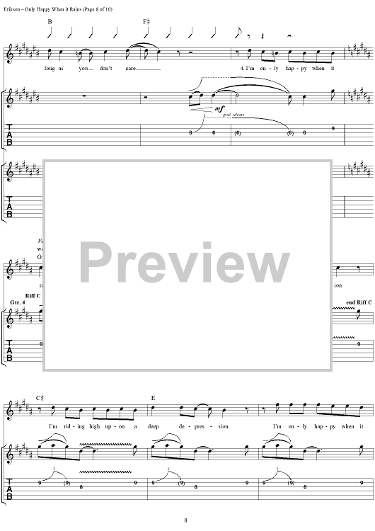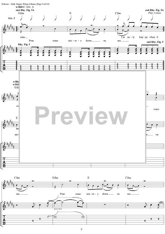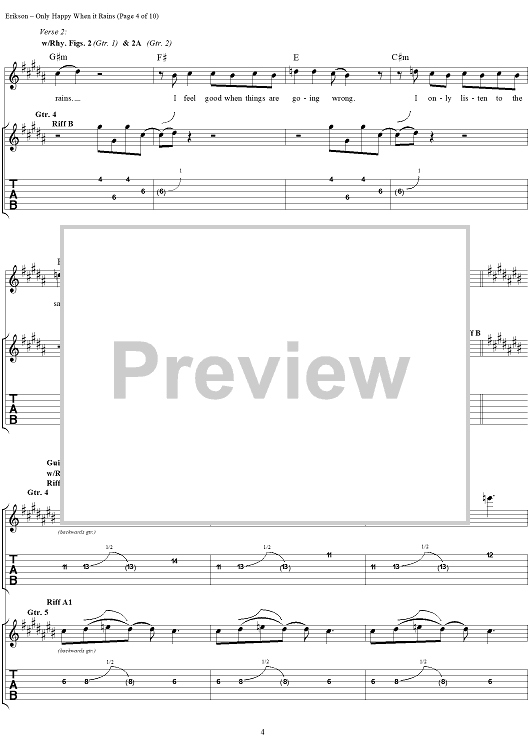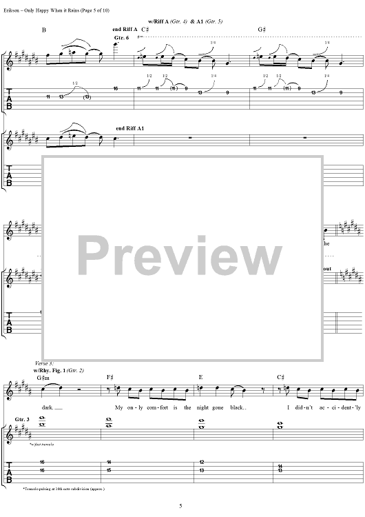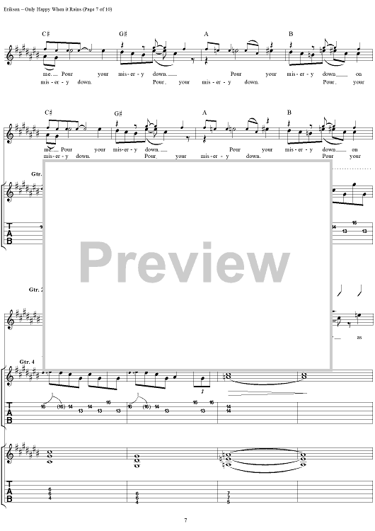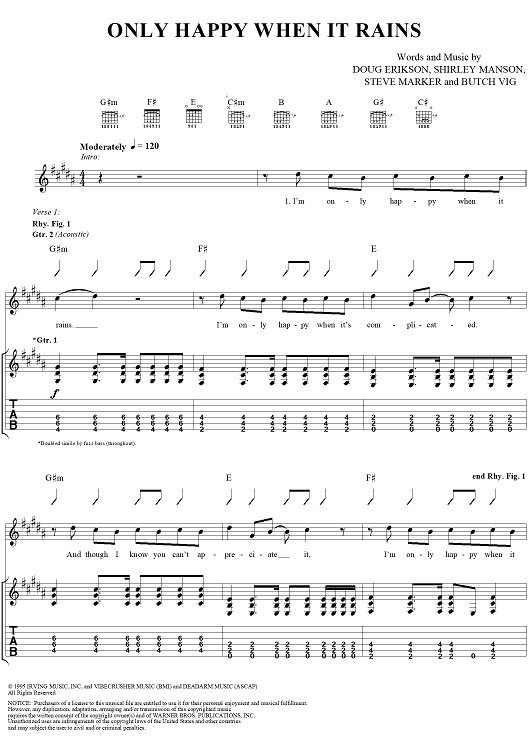 Digital Sheet Music for Only Happy When It Rains by Garbage, Steve Marker, Butch Vig, Doug Erikson, Shirley Manson scored for Guitar Tab/Vocal; id:116590