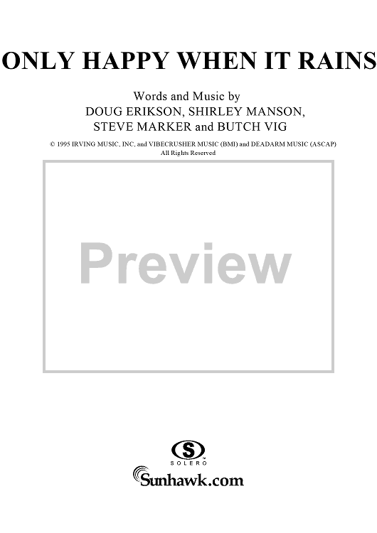 "Only Happy When It Rains" Sheet Music by Garbage