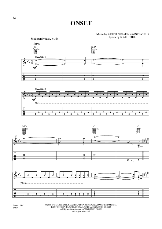 Digital Sheet Music for Onset by Keith Nelson, Josh Todd, Buckcherry, Stevie D. scored for Guitar Tab/Vocal; id:360518