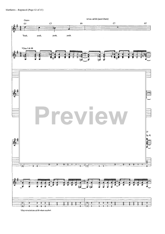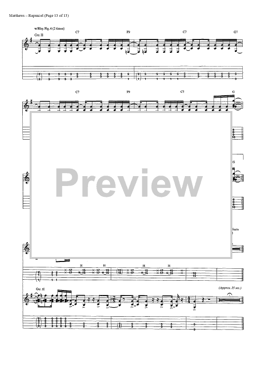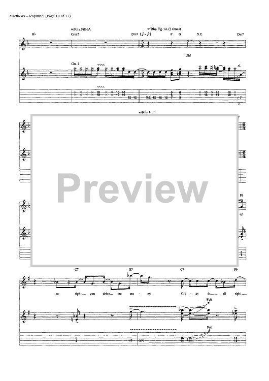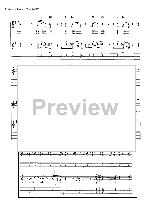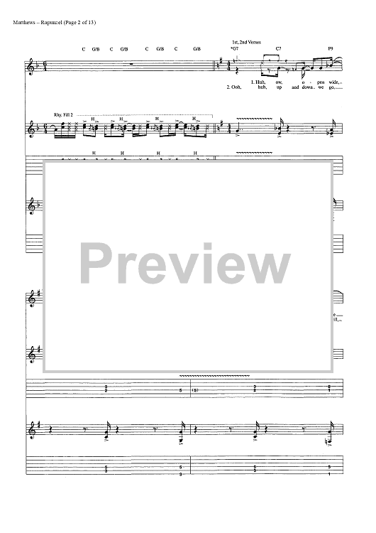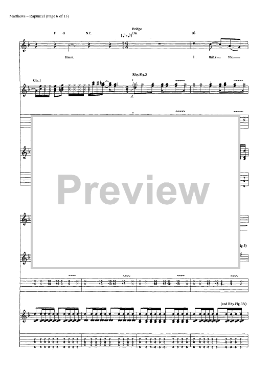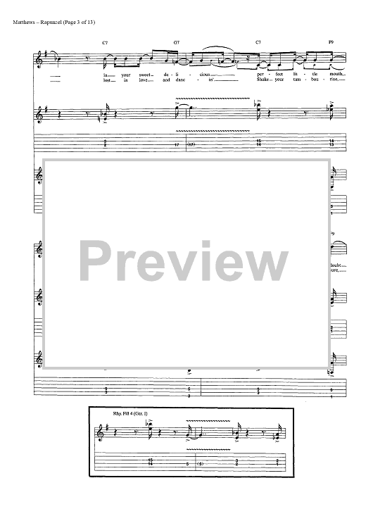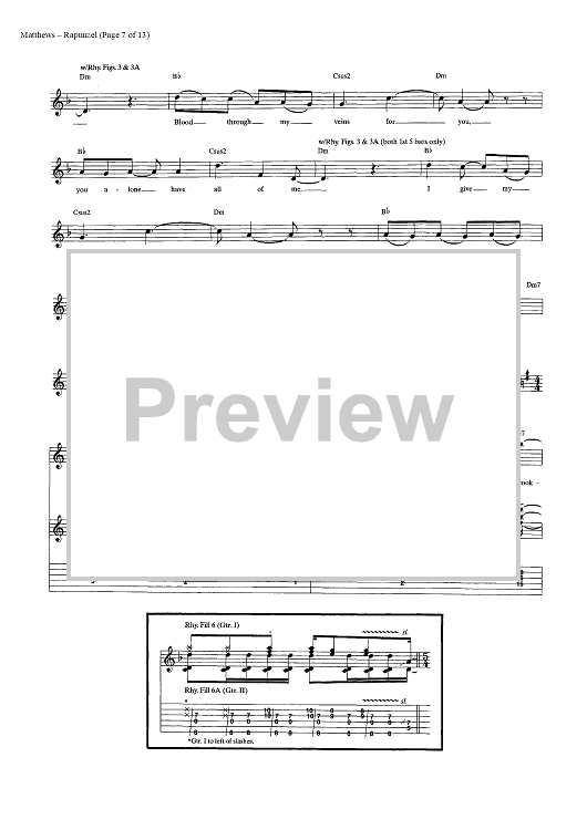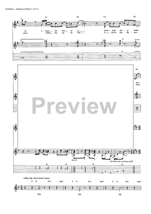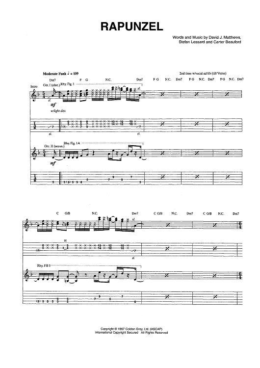 Digital Sheet Music for Rapunzel by Dave Matthews Band, Dave Matthews, Carter Beauford, Stefan Lessard scored for Guitar Tab/Vocal; id:448234