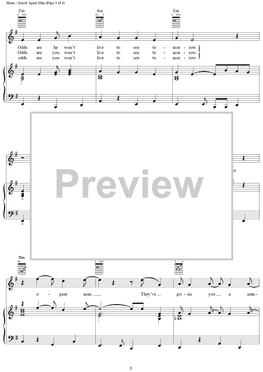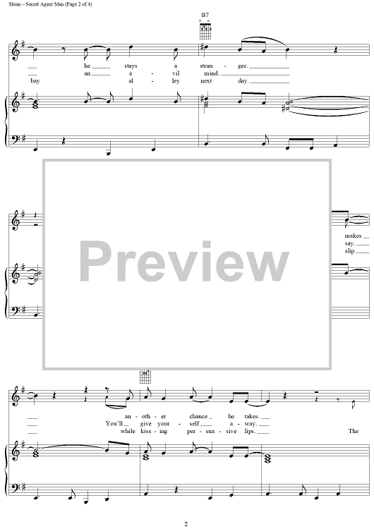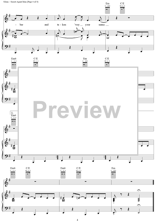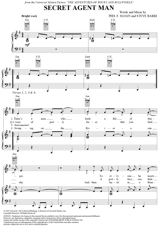 Digital Sheet Music for Secret Agent Man by Steve Barri, Johnny Rivers, P. F. Sloan scored for Piano/Vocal/Chords; id:241776