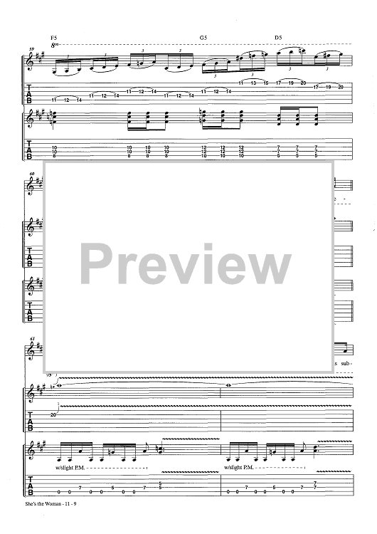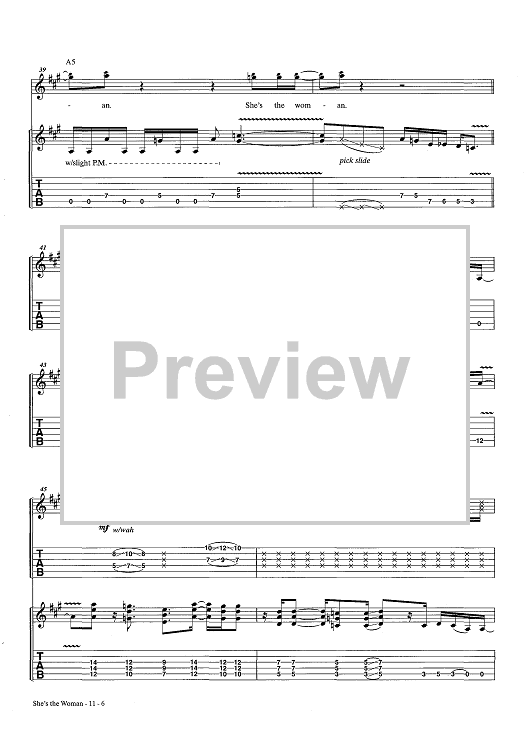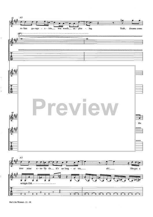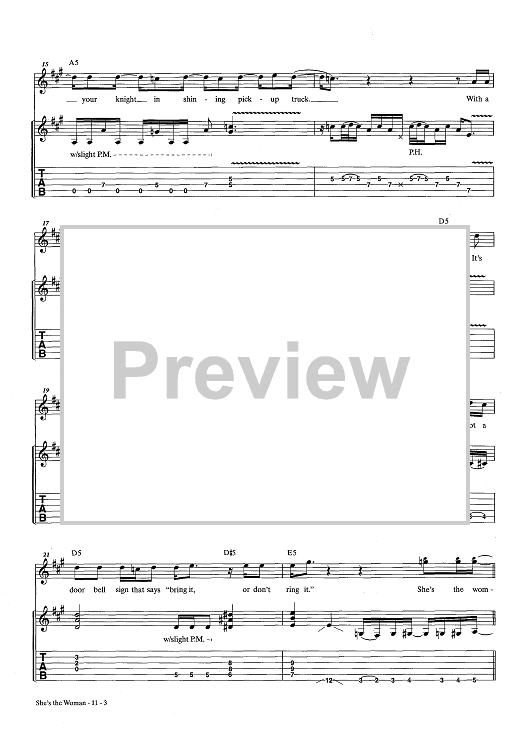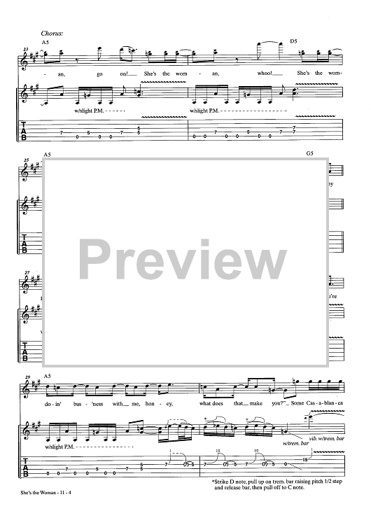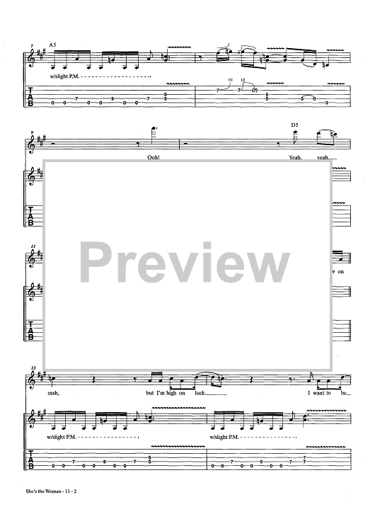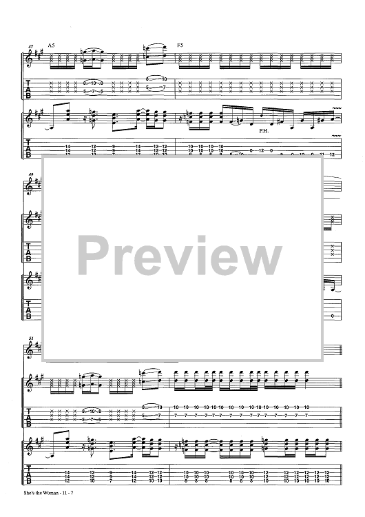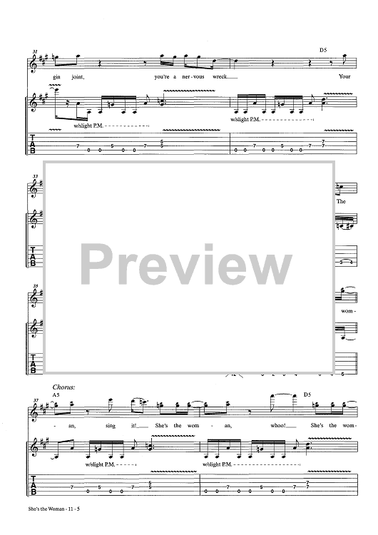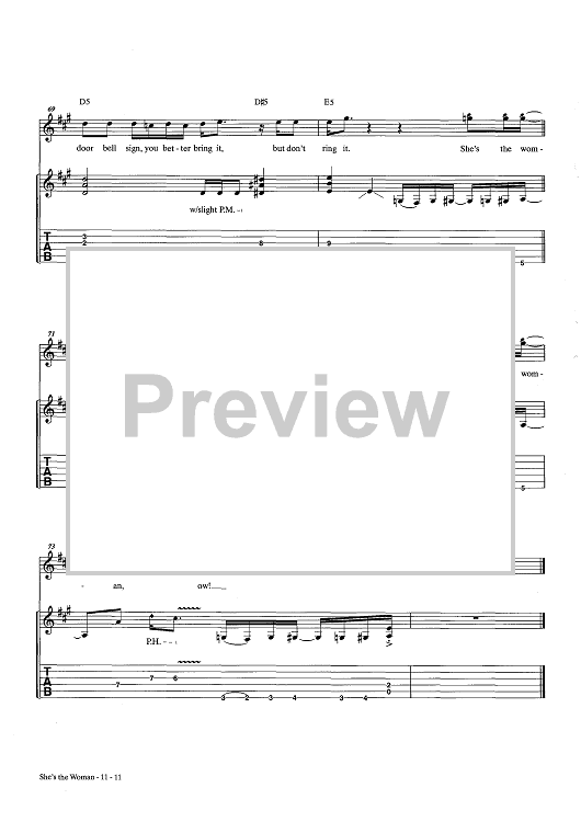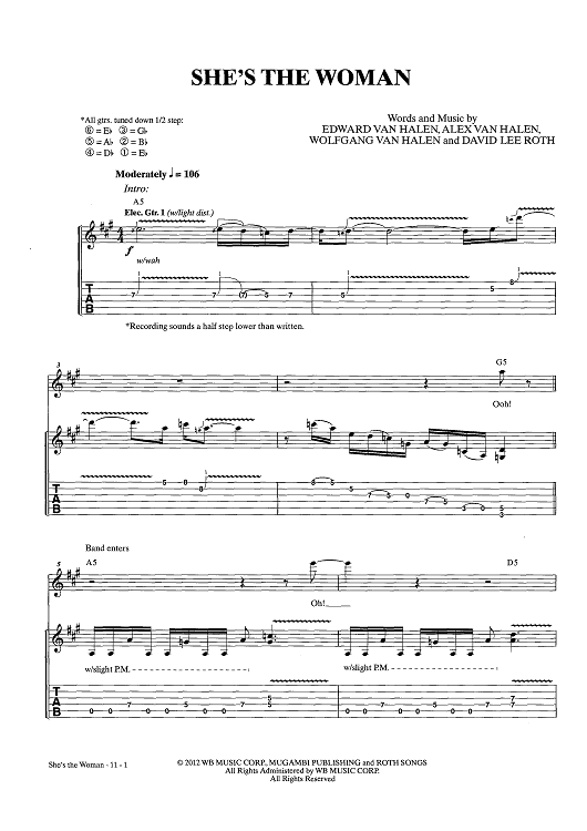 Digital Sheet Music for She's The Woman by Eddie Van Halen, David Lee Roth, Alex Van Halen, Van Halen, Wolfgang Van Halen scored for Guitar Tab/Vocal; id:430295
