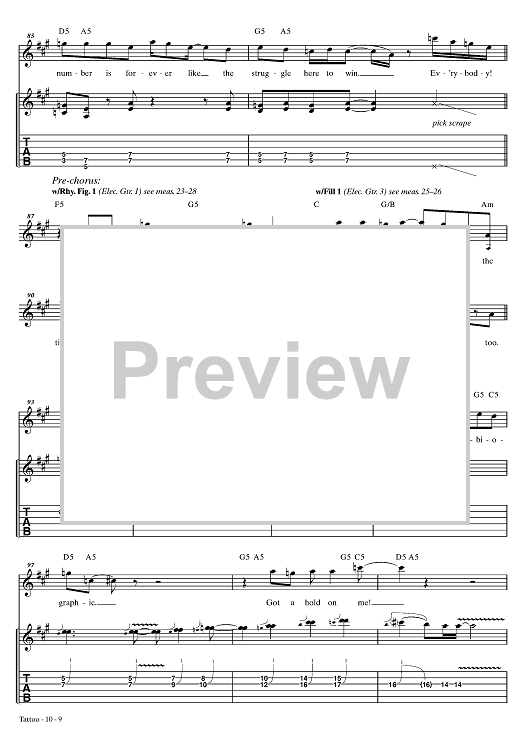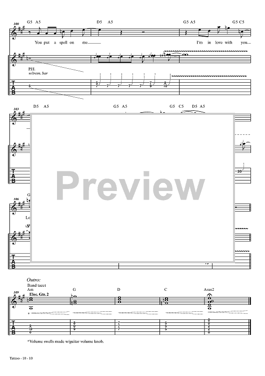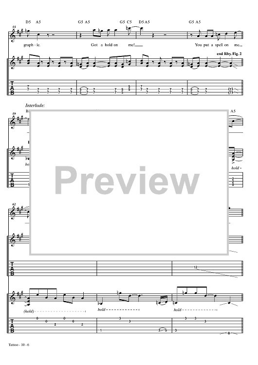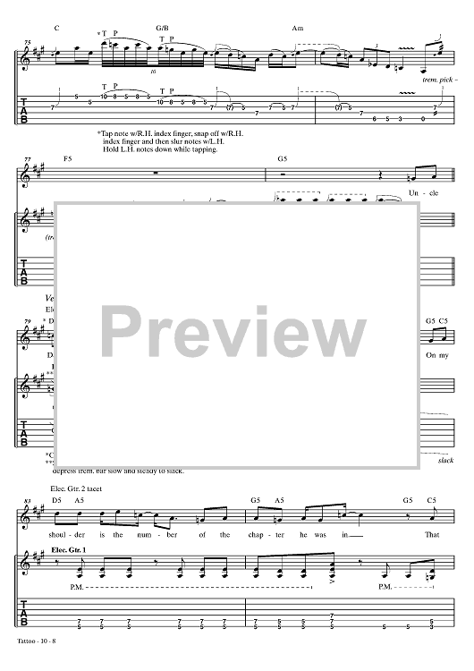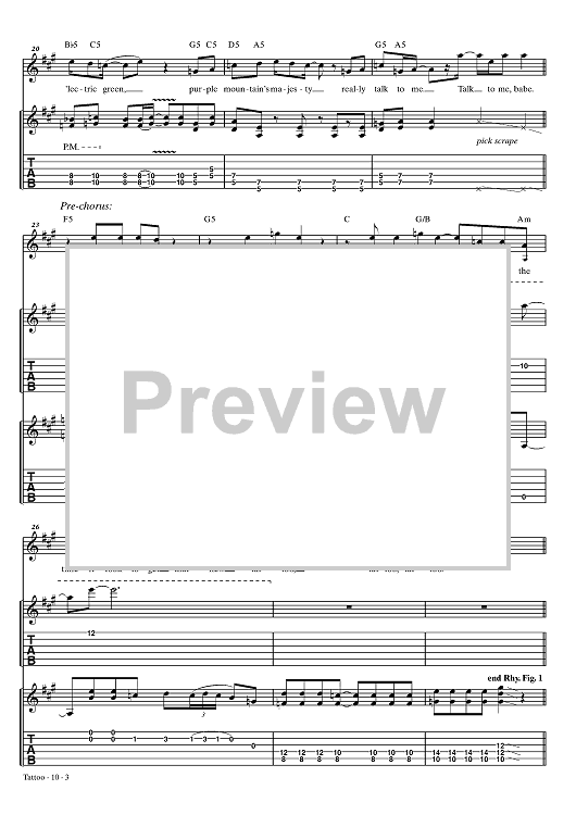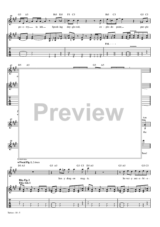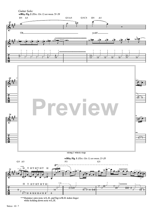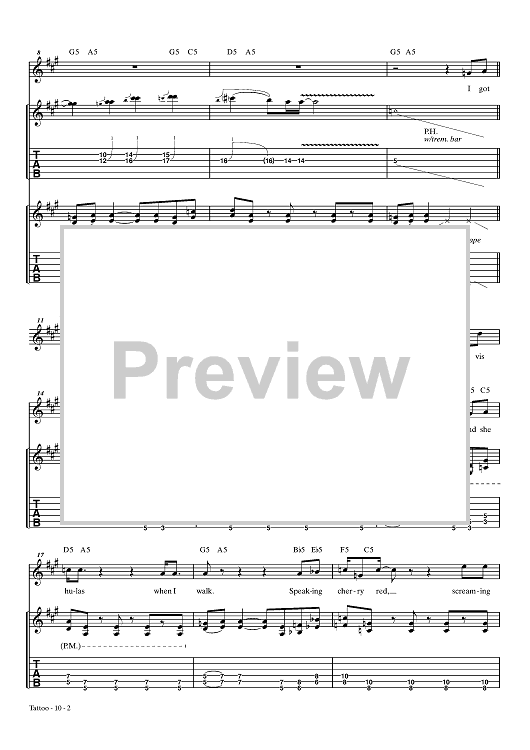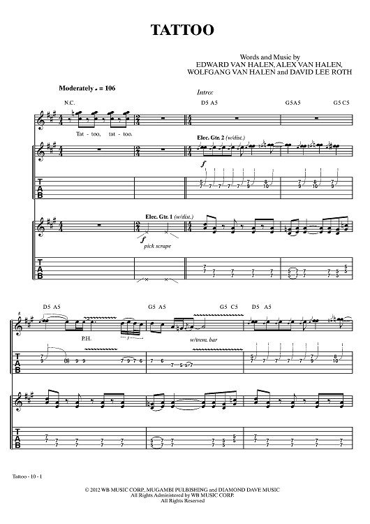 Digital Sheet Music for Tattoo by Eddie Van Halen, David Lee Roth, Alex Van Halen, Van Halen, Wolfgang Van Halen scored for Guitar Tab/Vocal; id:430297