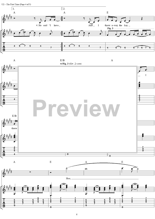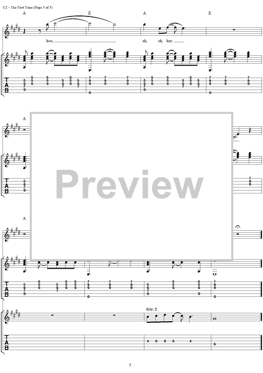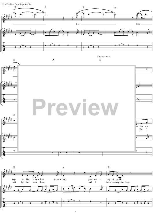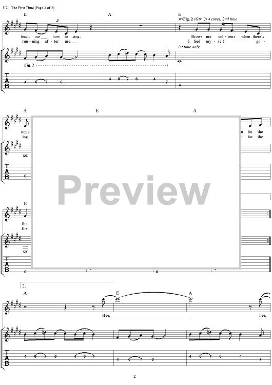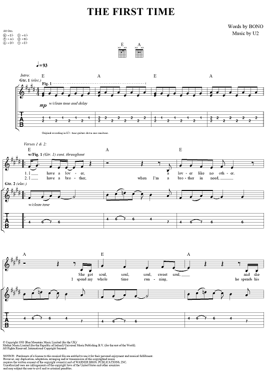 Digital Sheet Music for The First Time by U2, Bono scored for Guitar Tab/Vocal; id:296475