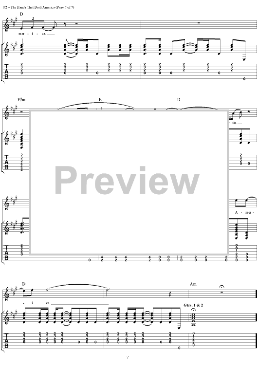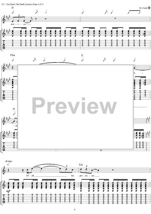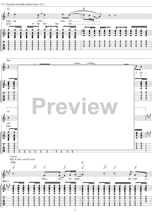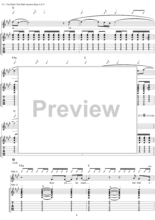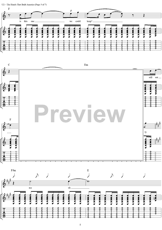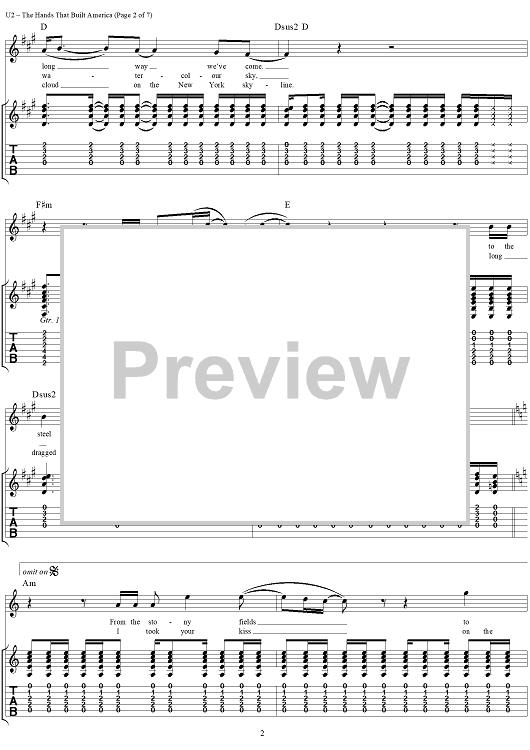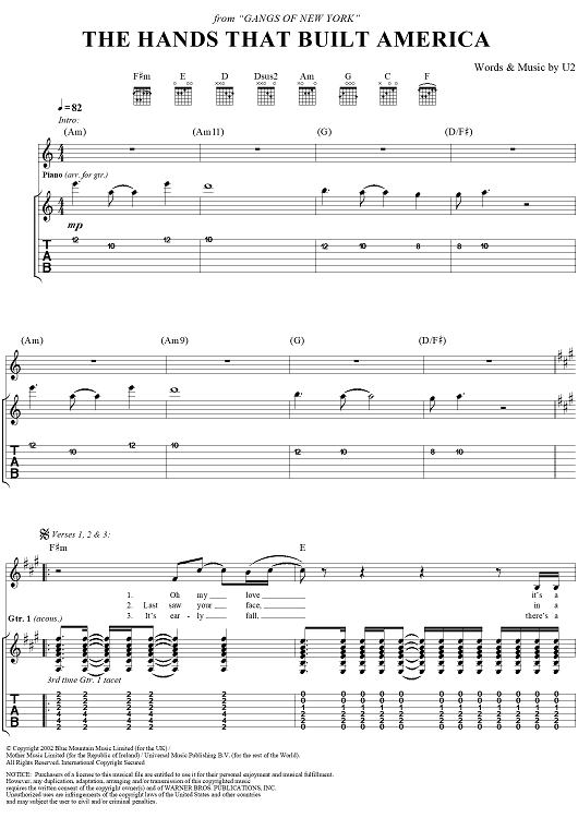 Digital Sheet Music for The Hands That Built America by U2 scored for Guitar Tab/Vocal; id:296470