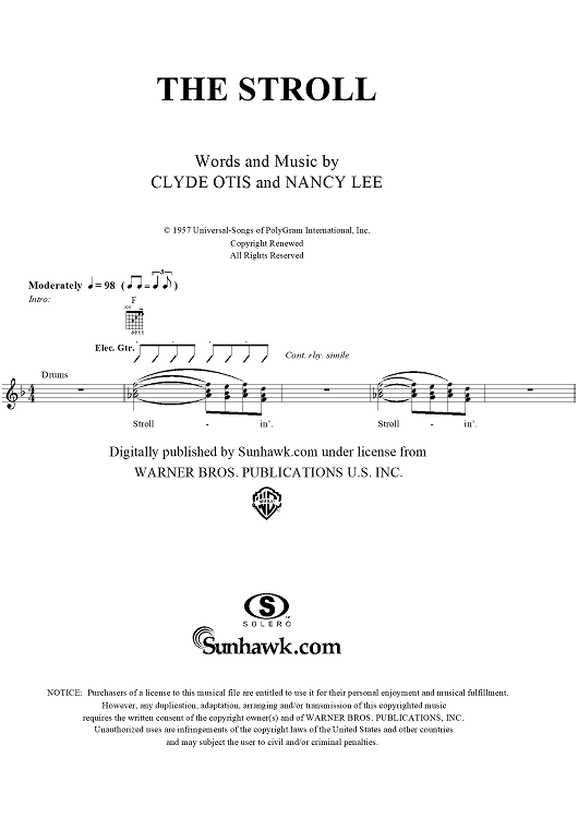 Digital Sheet Music for The Stroll by Clyde Otis, Nancy Lee, The Diamonds scored for Lead Sheet; id:234713