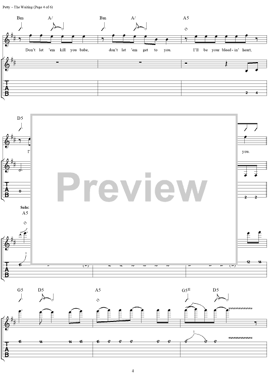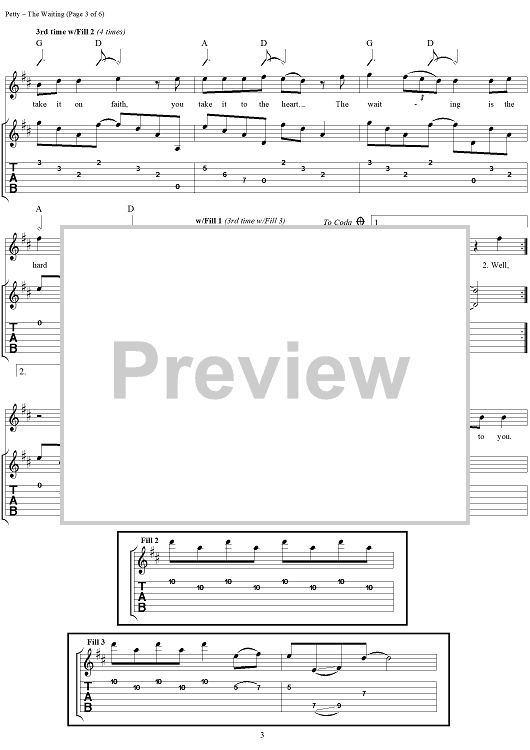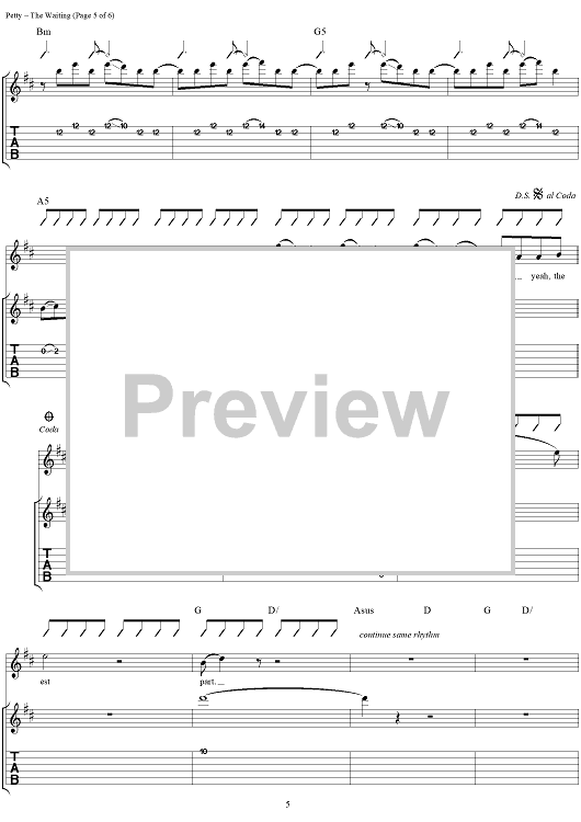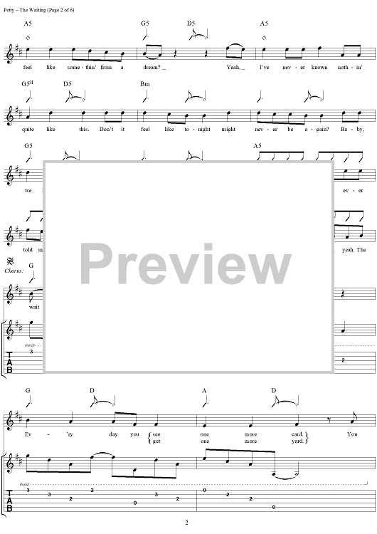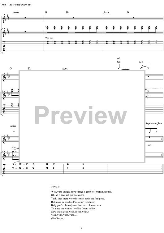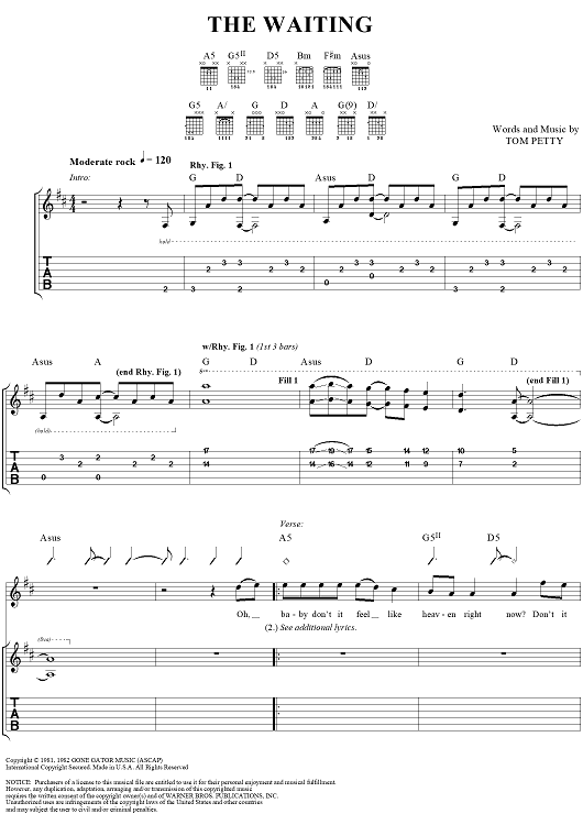 Digital Sheet Music for The Waiting by Tom Petty scored for Guitar Tab/Vocal; id:113789