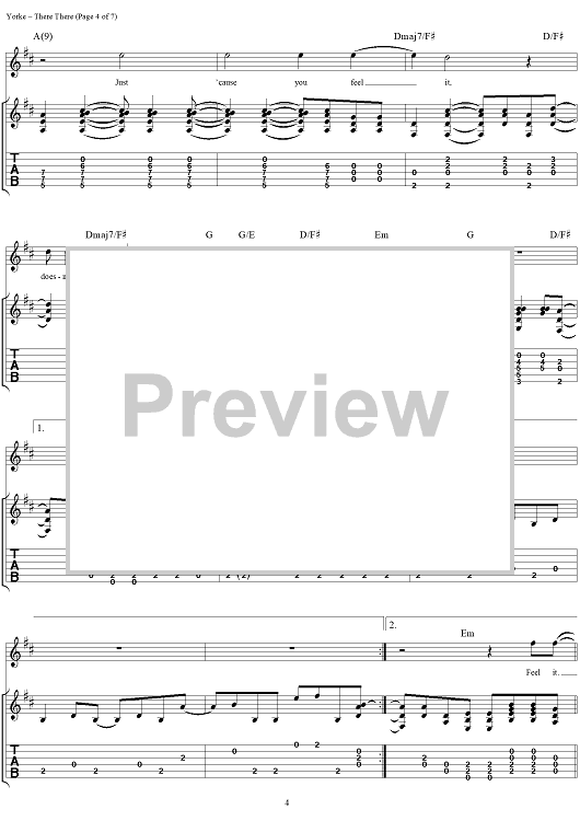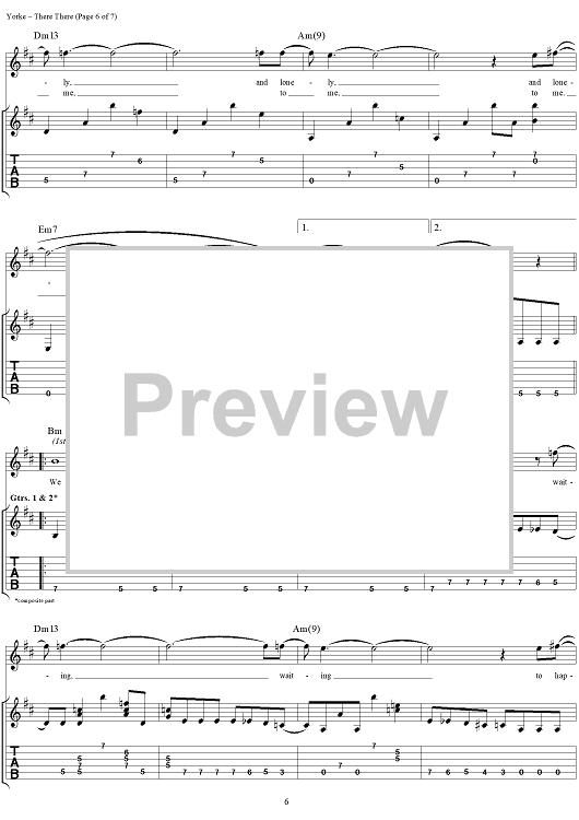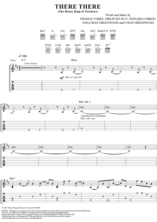 Digital Sheet Music for There There by Thomas Yorke, Jonathan Greenwood, Philip Selway, Coz, Edward O'Brien, Radiohead scored for Guitar Tab/Vocal; id:297005