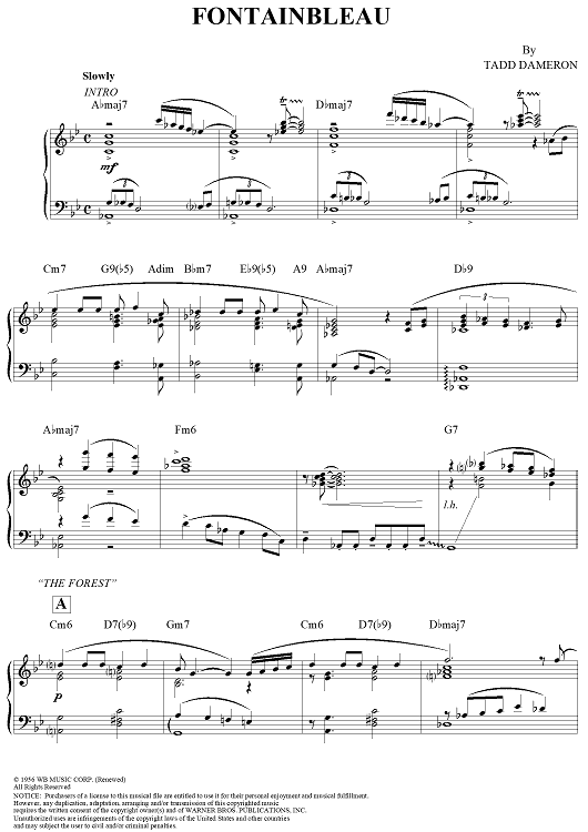 Digital Sheet Music for Fontainbleau by Tadd Dameron scored for Piano Solo; id:271885