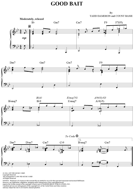 Digital Sheet Music for Good Bait by Count Basie, Tadd Dameron scored for Piano Solo; id:271914