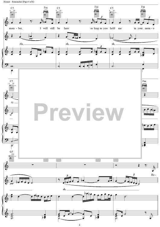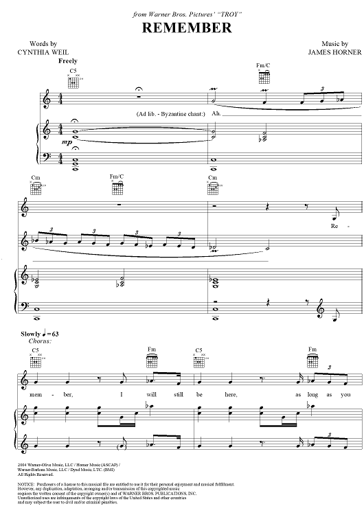 Digital Sheet Music for Remember by Cynthia Weil, Josh Groban, Tanja Tzarovska, James Horner scored for Piano/Vocal/Chords; id:307222