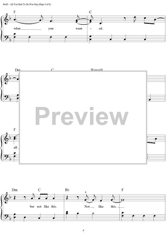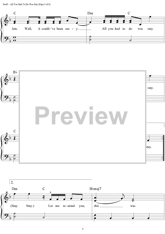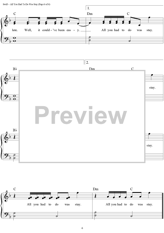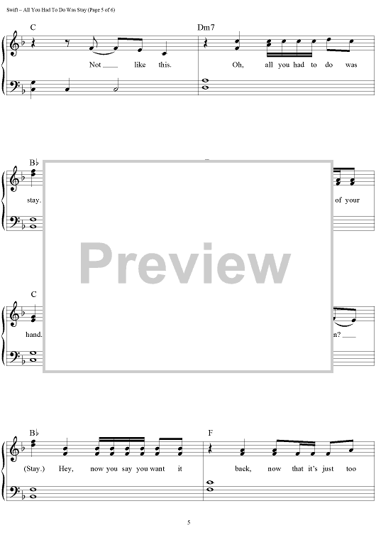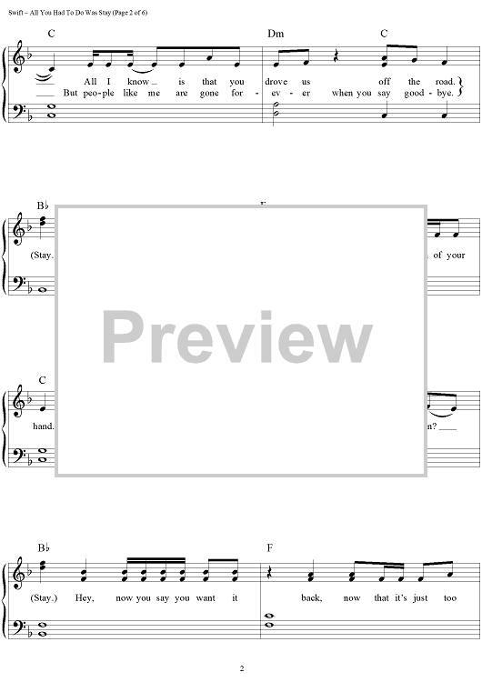 "All You Had To Do Was Stay" Sheet Music by Taylor Swift