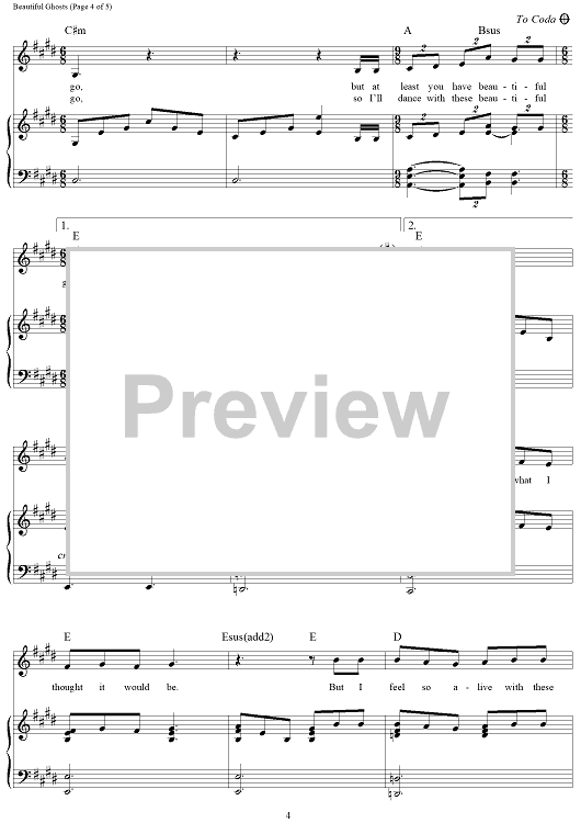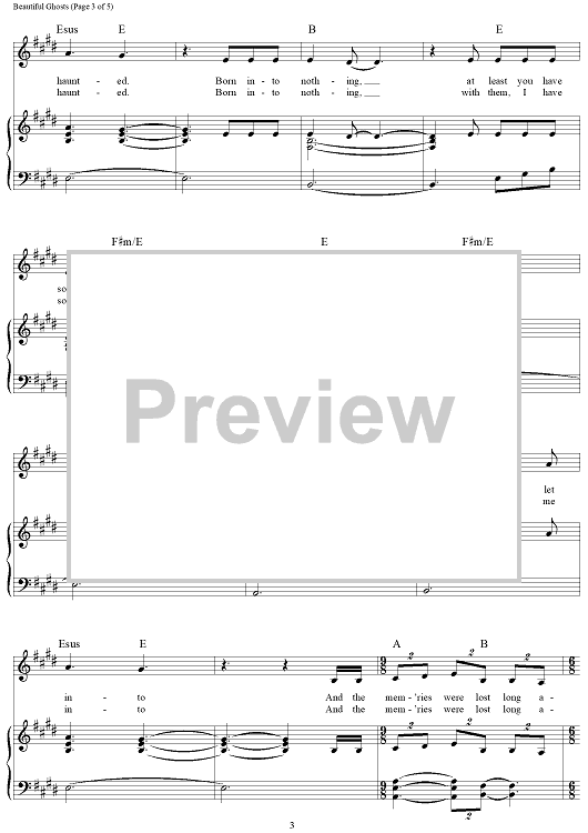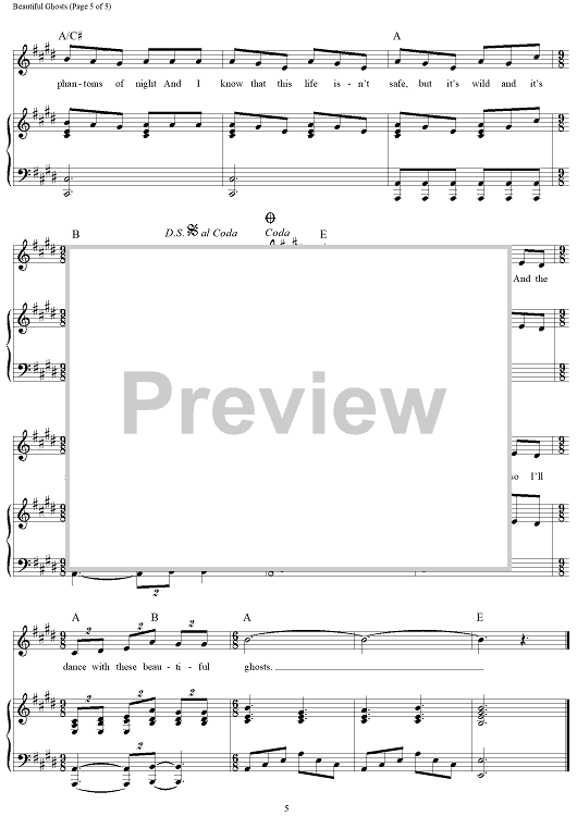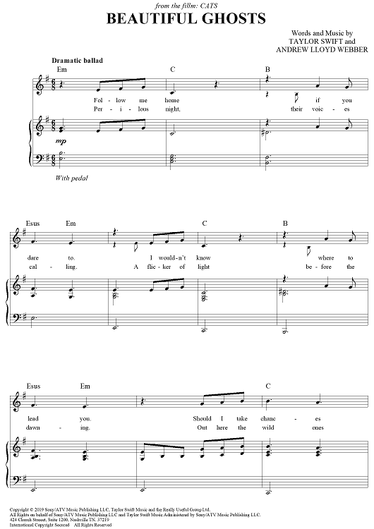 Digital Sheet Music for Beautiful Ghosts - from the film Cats by Andrew Lloyd Webber, Taylor Swift scored for Piano/Vocal/Chords; id:467901