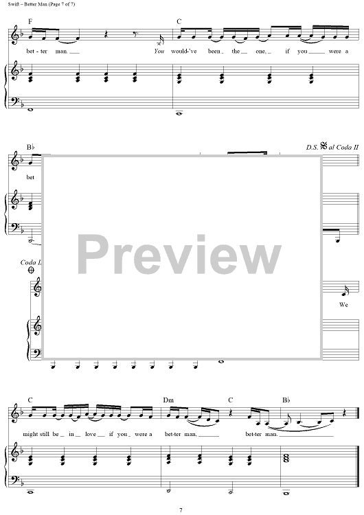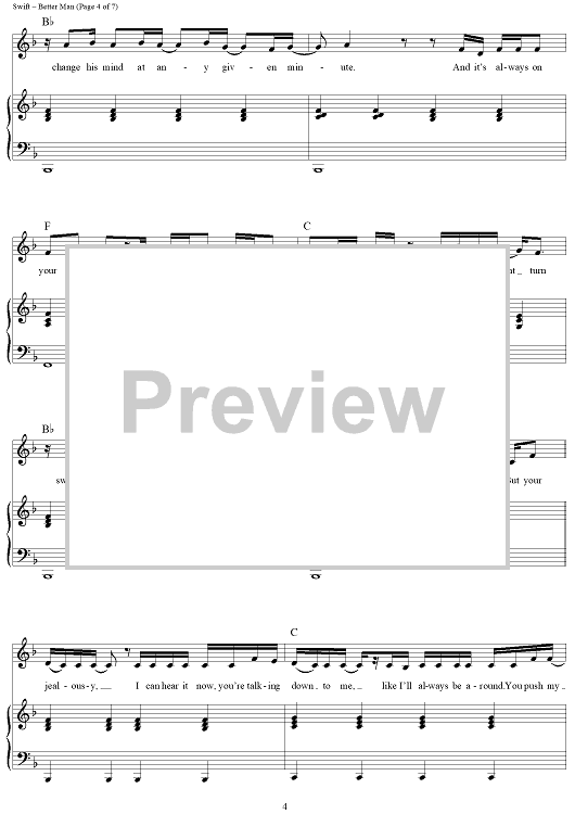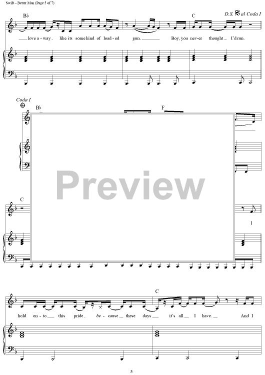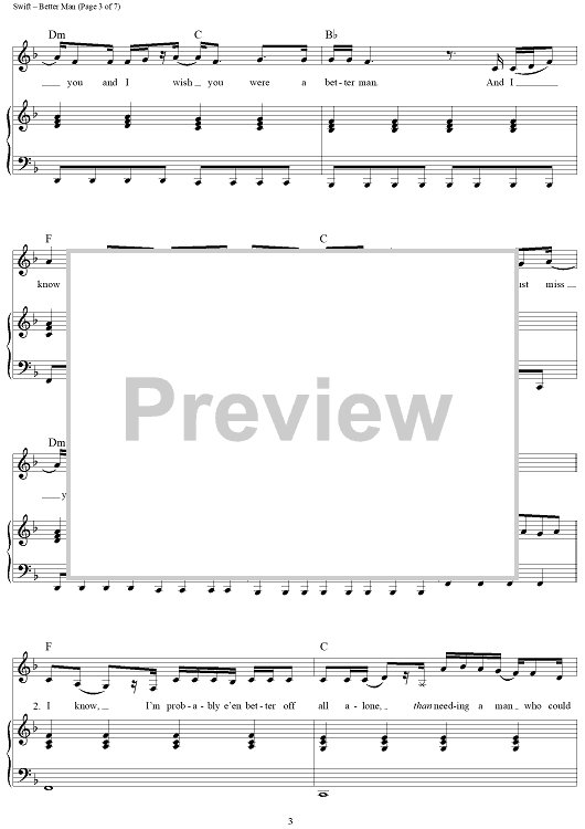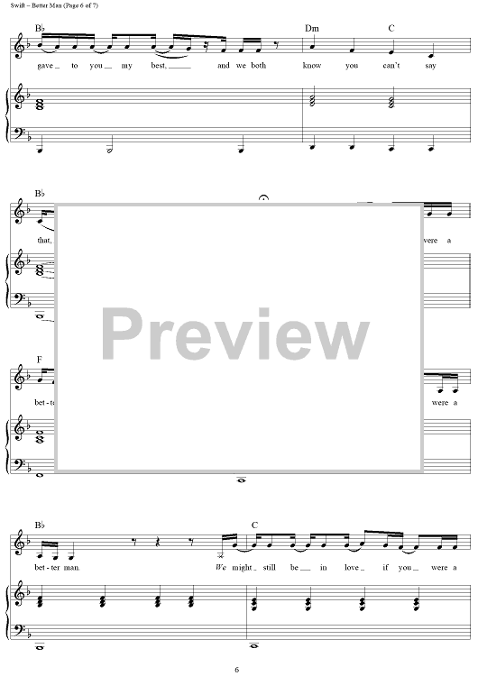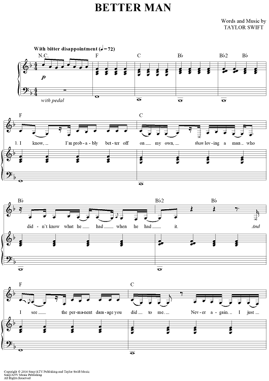 Digital Sheet Music for Better Man by Little Big Town, Taylor Swift scored for Piano/Vocal/Chords; id:463011
