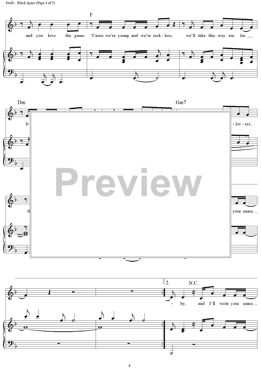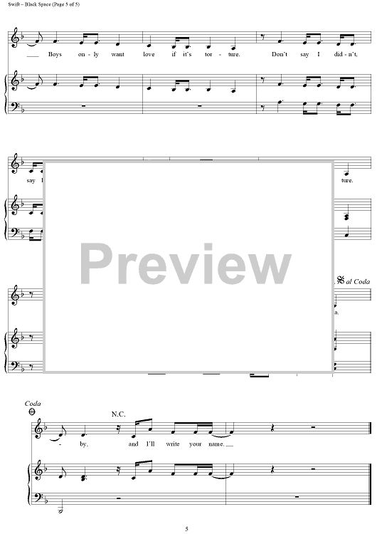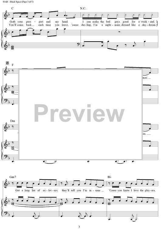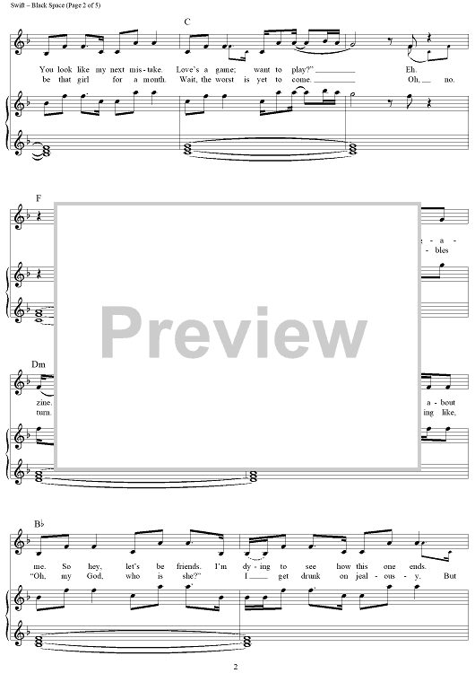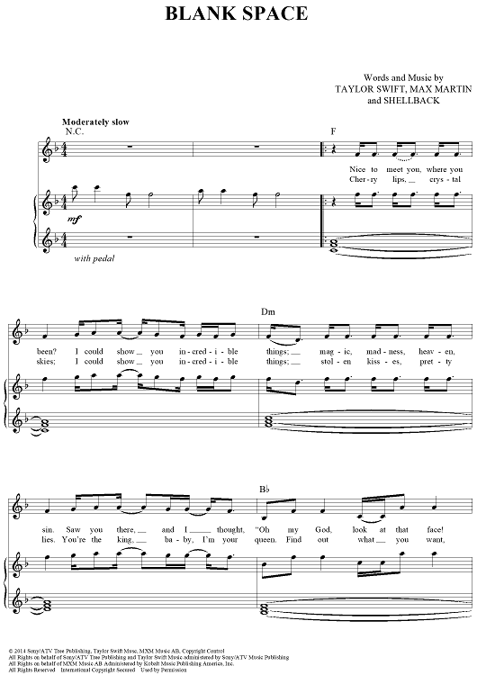 Digital Sheet Music for Blank Space by Max Martin, Taylor Swift, Shellback scored for Piano/Vocal/Chords; id:444655