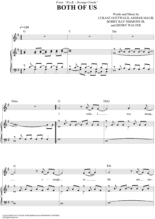 Digital Sheet Music for Both Of Us by Taylor Swift, Lukasz Gottwald, B.o.B., Bobby Ray Simmons, Ammar Malike, Henry Walter scored for Piano/Vocal/Chords; id:430244