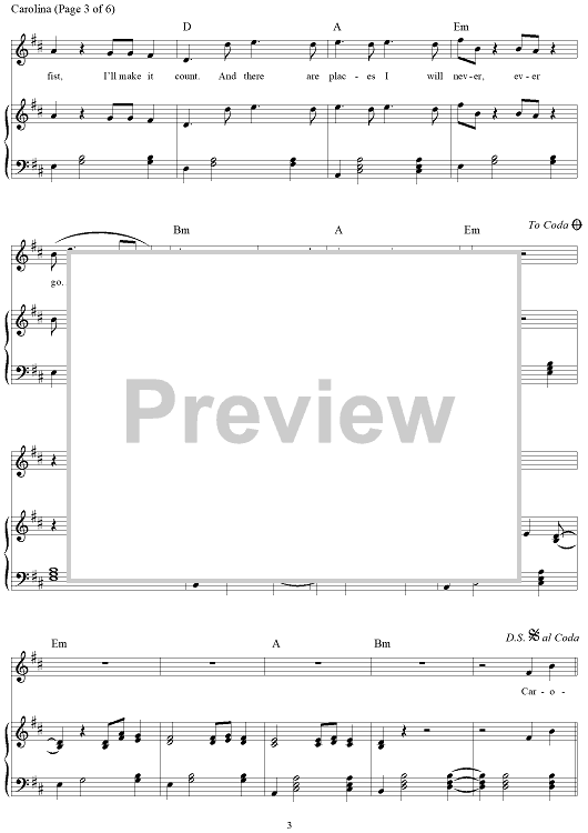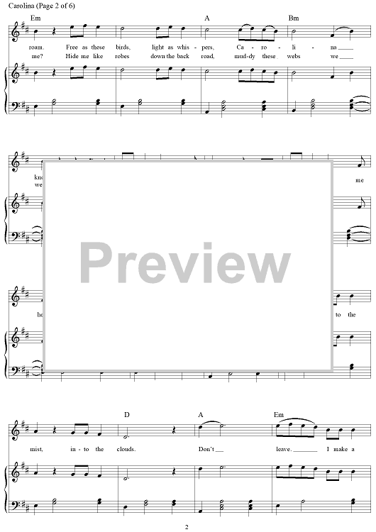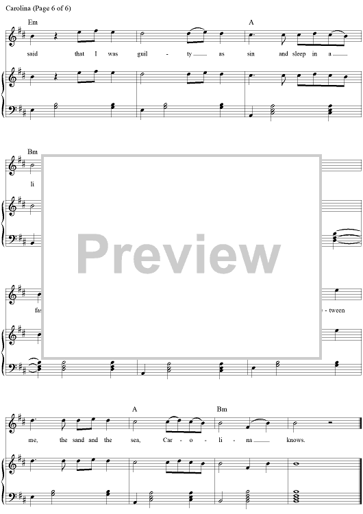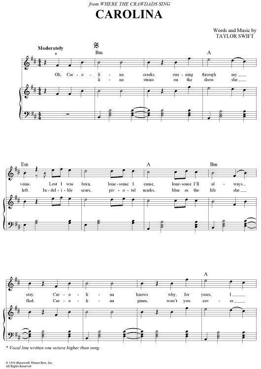 Digital Sheet Music for Carolina - from Where the Crawdads Sing by Taylor Swift scored for Piano/Vocal/Chords; id:497213