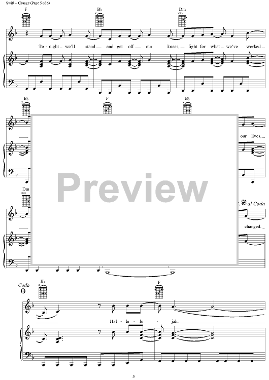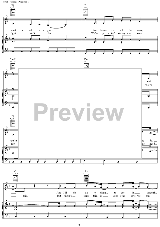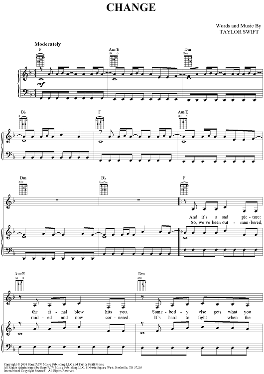 Digital Sheet Music for Change by Taylor Swift scored for Piano/Vocal/Chords; id:408512