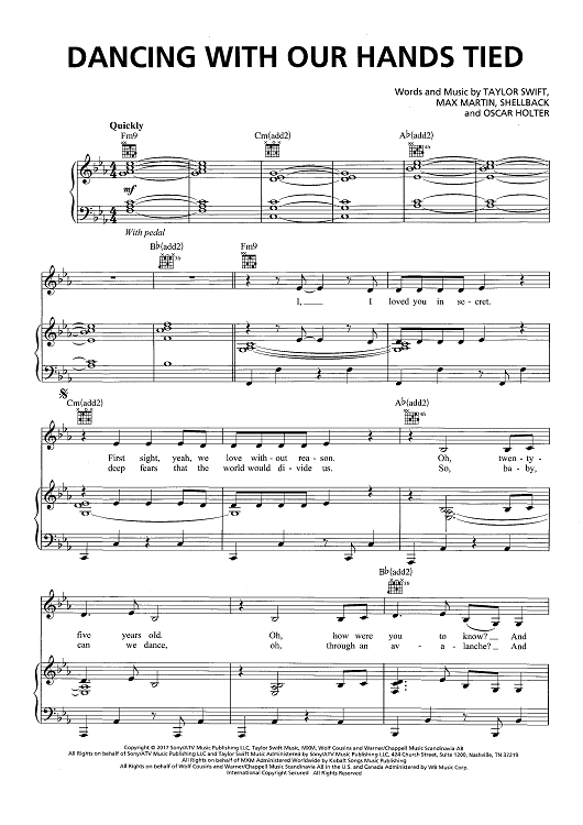 Digital Sheet Music for Dancing With Our Hands Tied by Max Martin, Taylor Swift, Shellback, Oscar Holter scored for Piano/Vocal/Chords; id:466079
