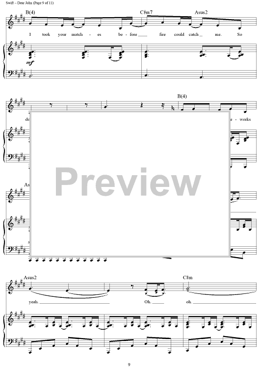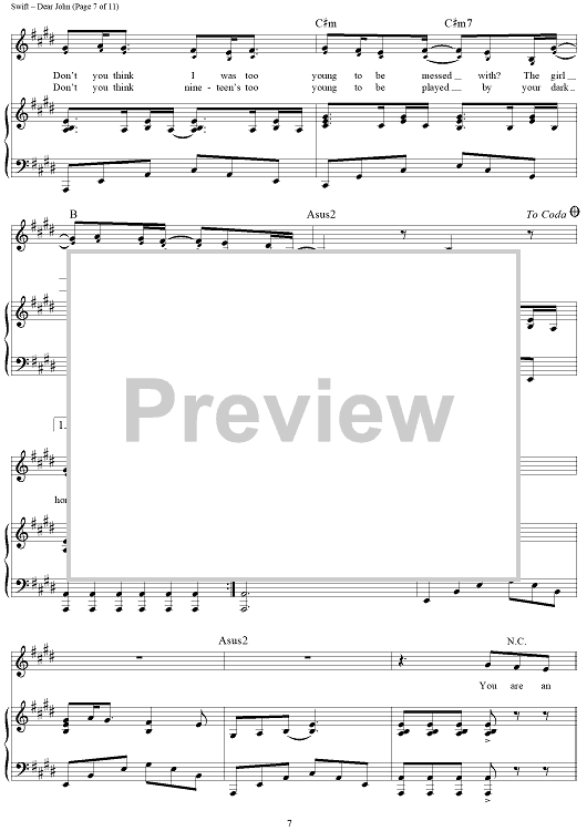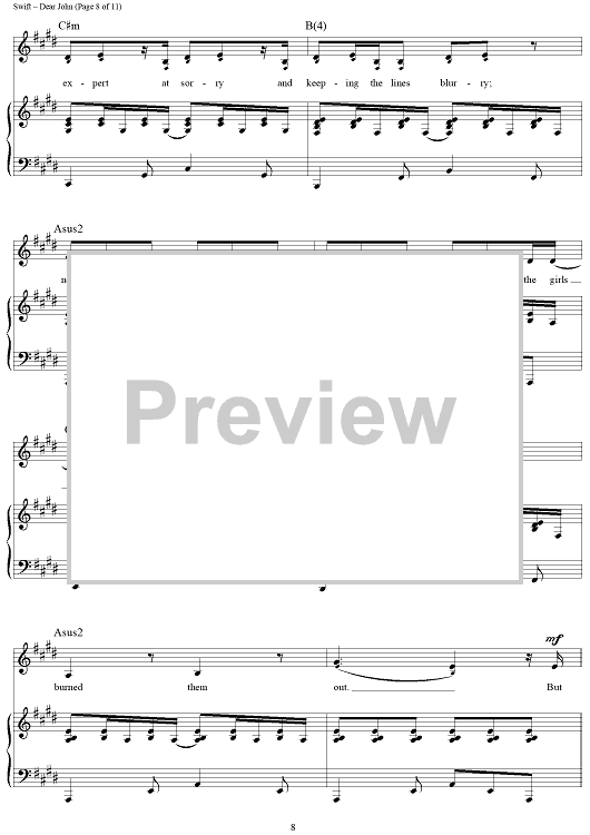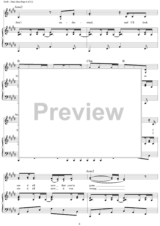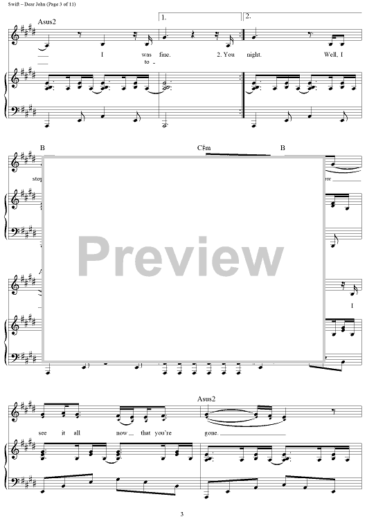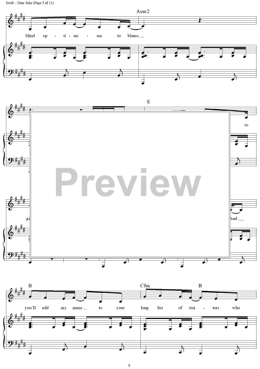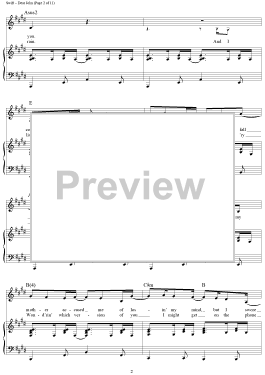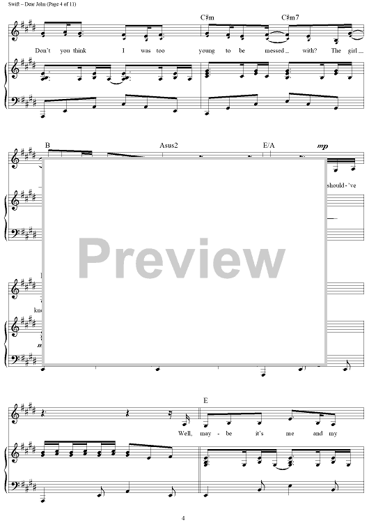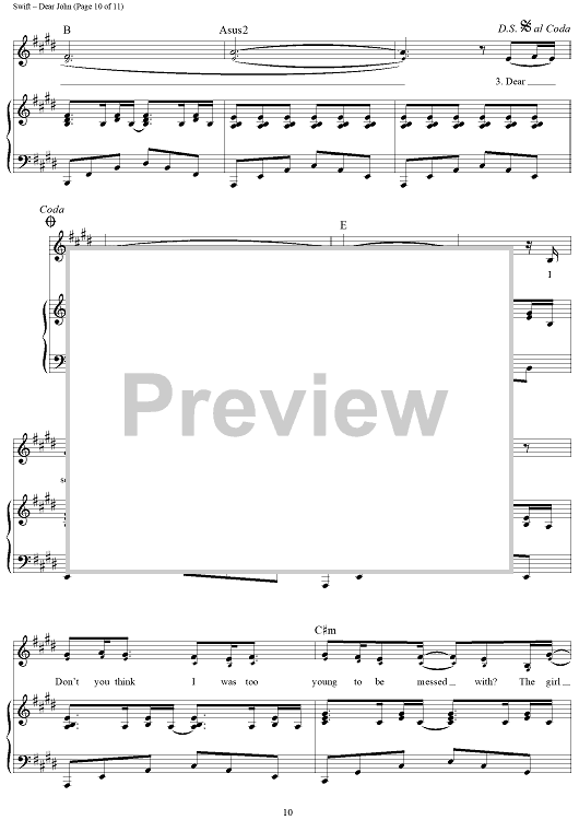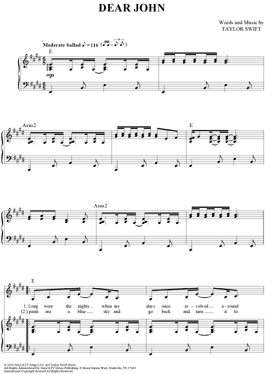 Digital Sheet Music for Dear John by Taylor Swift scored for Piano/Vocal/Chords; id:417648