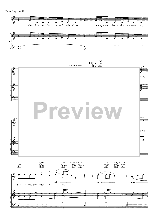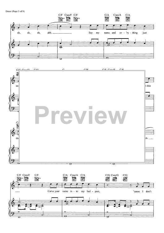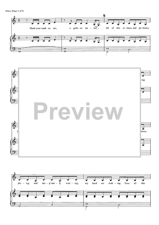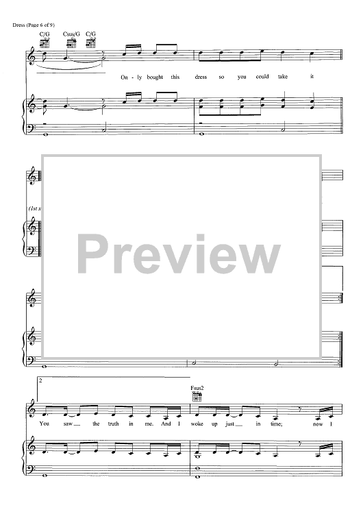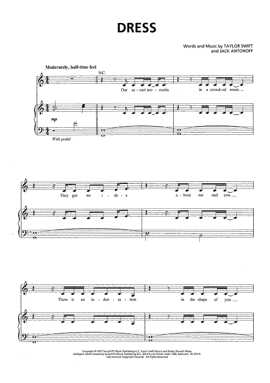 Digital Sheet Music for Dress by Taylor Swift, Jack Antonoff scored for Piano/Vocal/Chords; id:466081