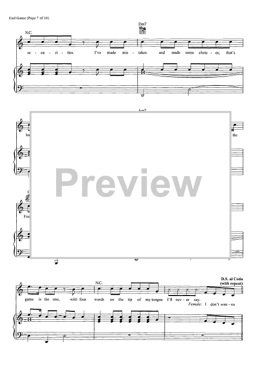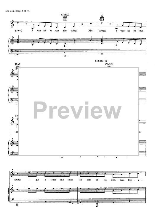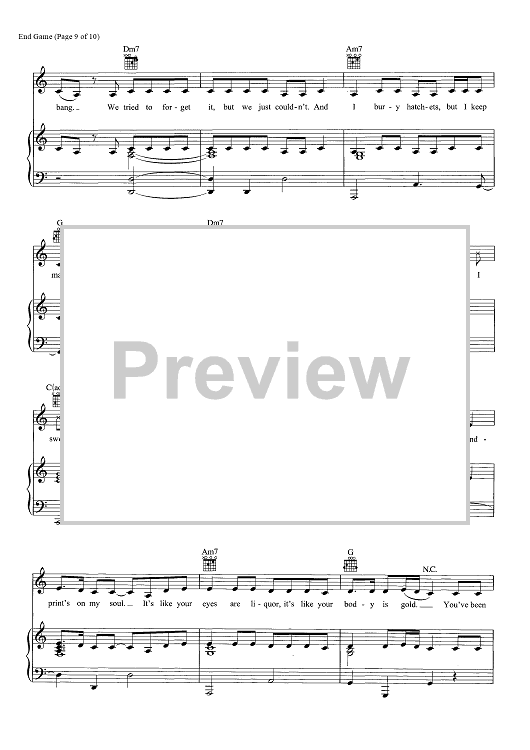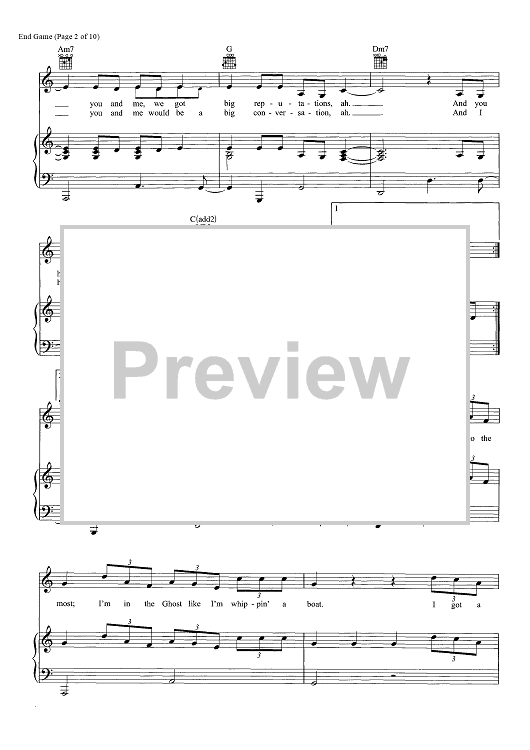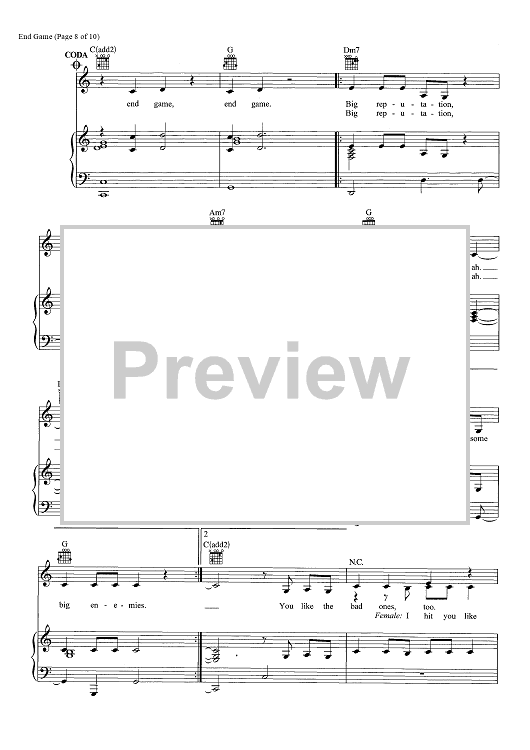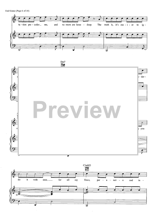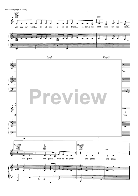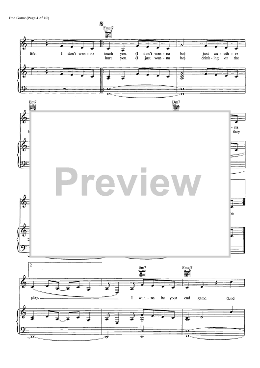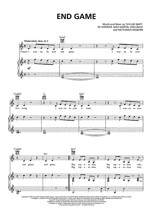 Digital Sheet Music for End Game by Max Martin, Taylor Swift, Ed Sheeran, Shellback, Nayvadius Wilburn scored for Piano/Vocal/Chords; id:466062