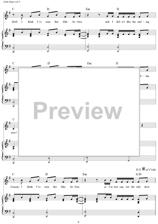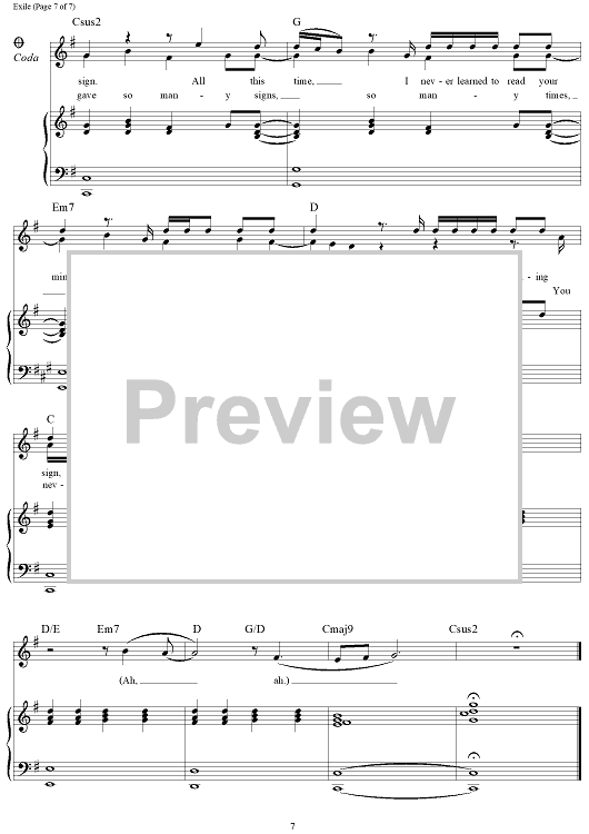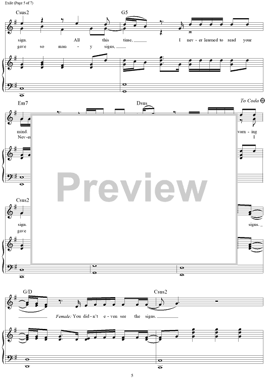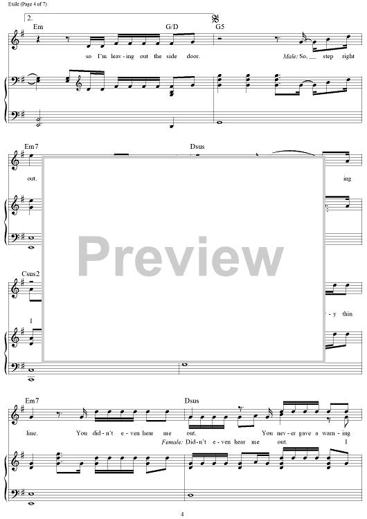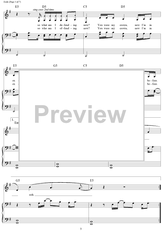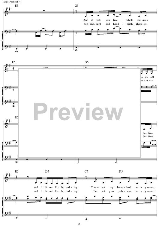 Digital Sheet Music for Exile by Taylor Swift, Justin Vernon, William Bowery scored for Piano/Vocal/Chords; id:468499