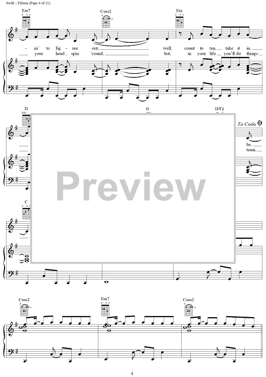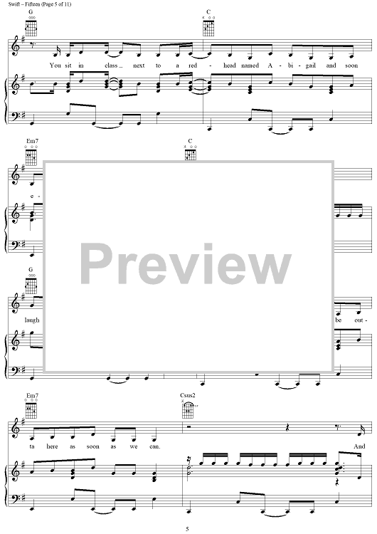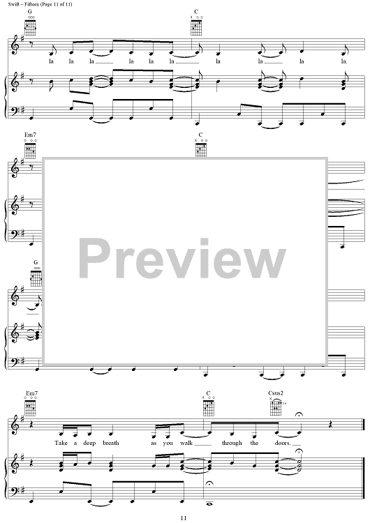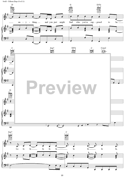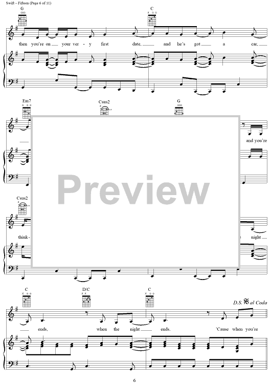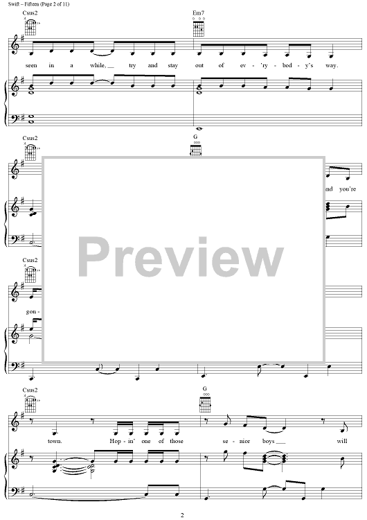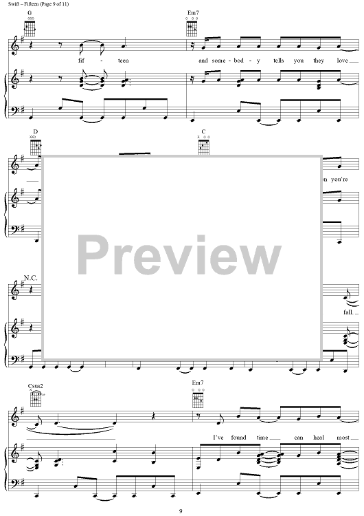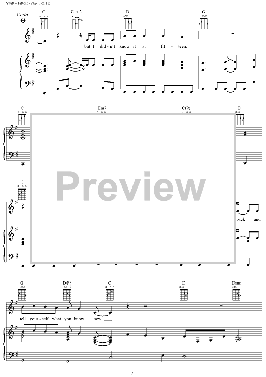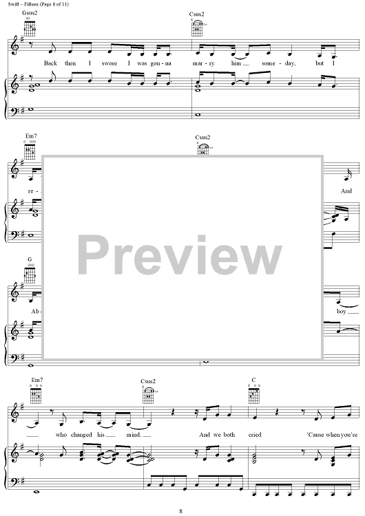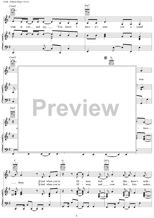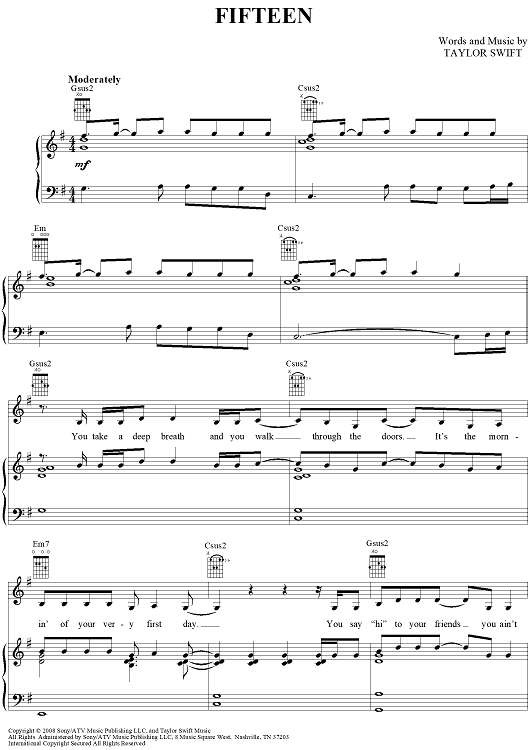 Digital Sheet Music for Fifteen by Taylor Swift scored for Piano/Vocal/Chords; id:408515
