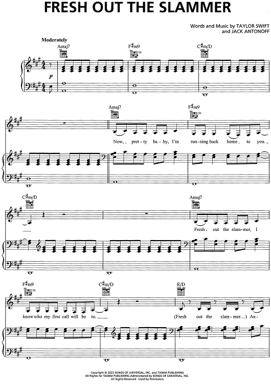 "Fresh Out the Slammer" Sheet Music by Taylor Swift