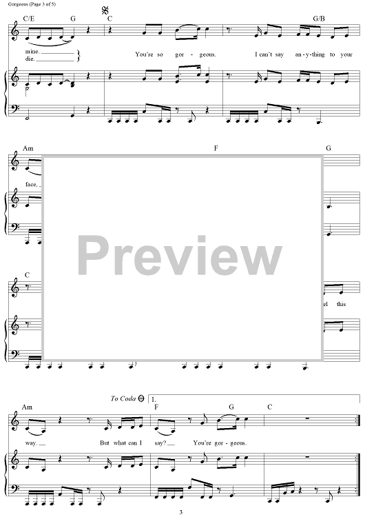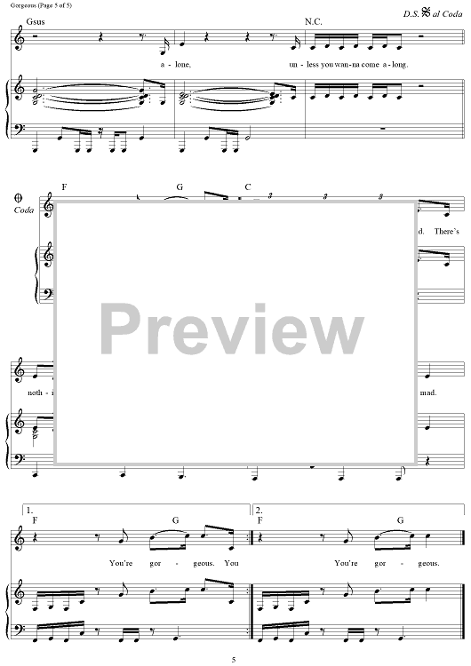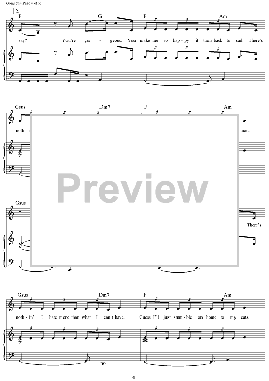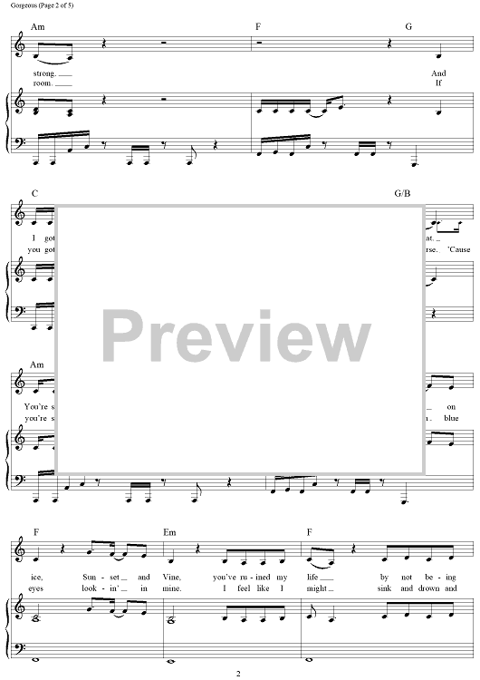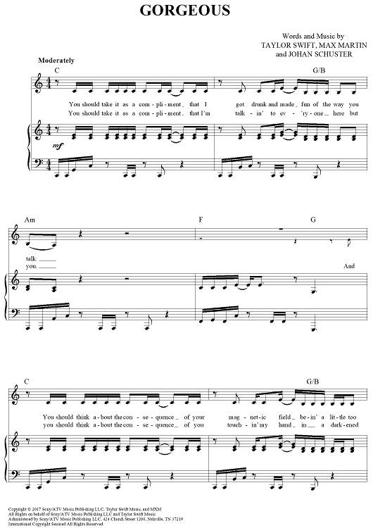 Digital Sheet Music for Gorgeous by Max Martin, Taylor Swift, Johan Schuster scored for Piano/Vocal/Chords; id:465774